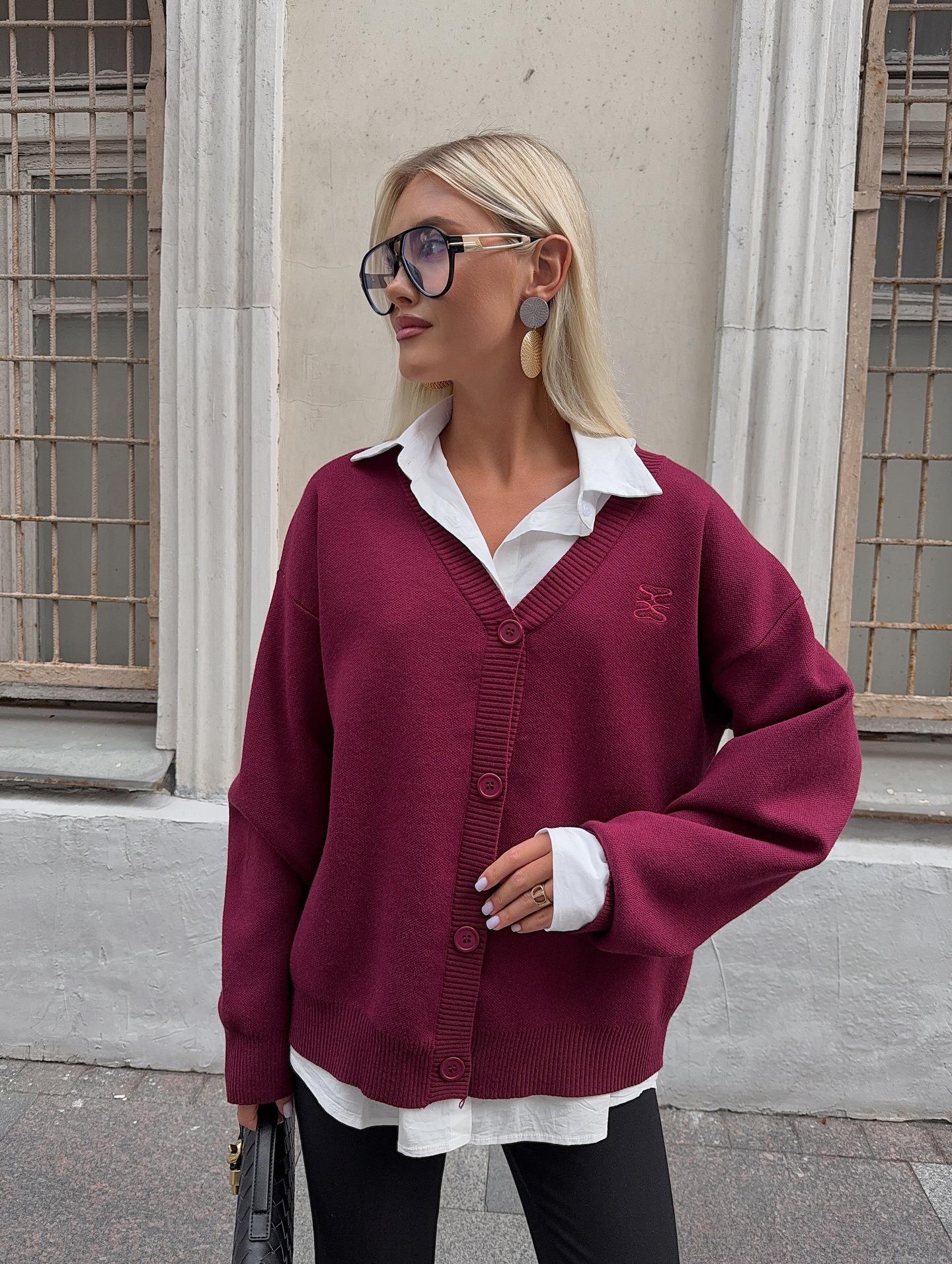 • Vintage Lazy Style V-Neck Single-Breasted Sweater Cardigan For Women Loose Fit Long Sleeve Knitted Jacket Cotton Polyester Blend Autumn Winter Outwear