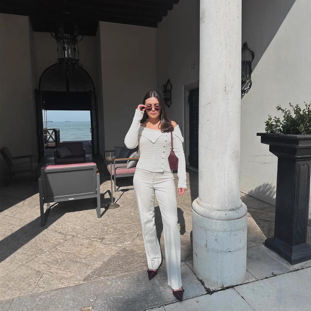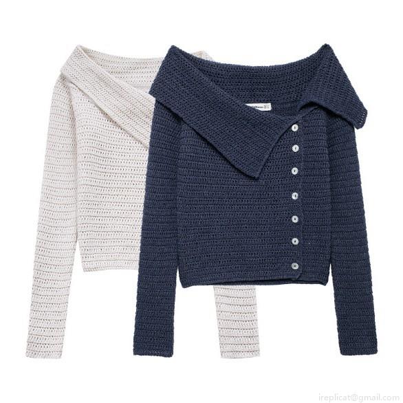 • Women Asymmetric Button Knitted Sweater Slash Neck Long Sleeve Pullover Soft Polyester Regenerated Cellulose Fiber Blend Loose Fit Solid Color Knit Top For Autumn Casual Daily Wear