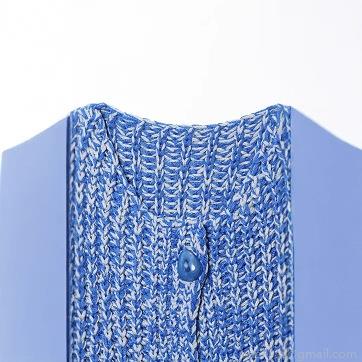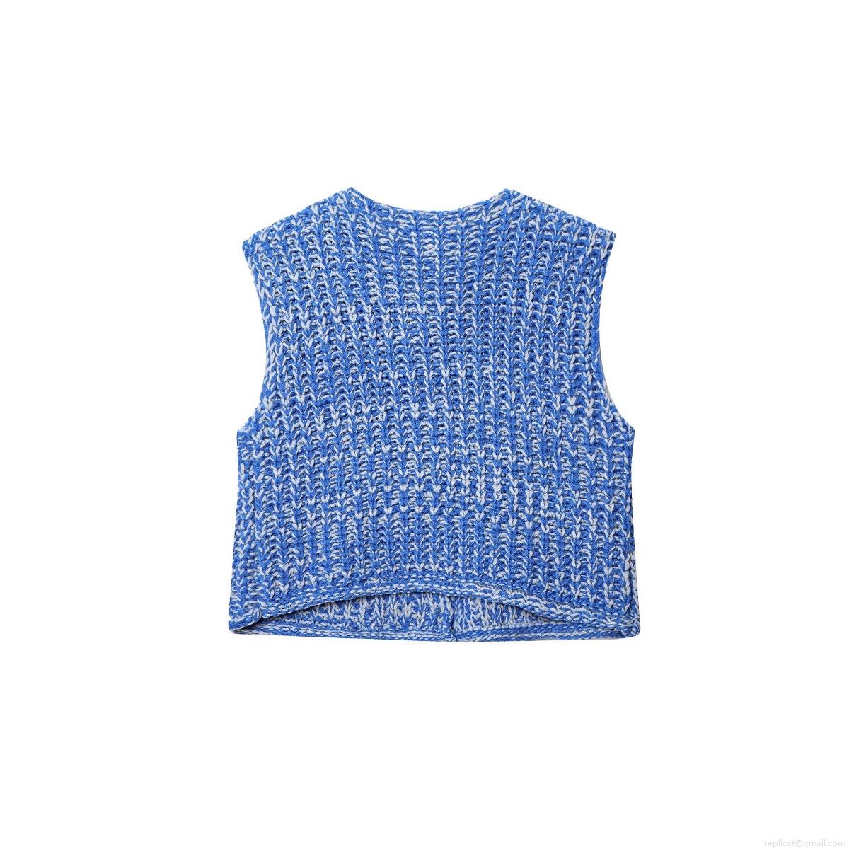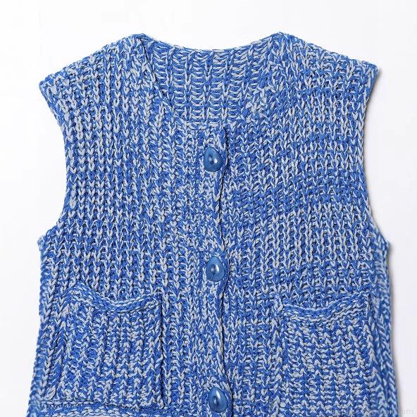 • Women Chunky Knit Vest V Neck Button Down Sleeveless Cropped Sweater Top Blue White Mixed Knitted Waistcoat With Two Pockets Casual Streetwear Chic Cardigan