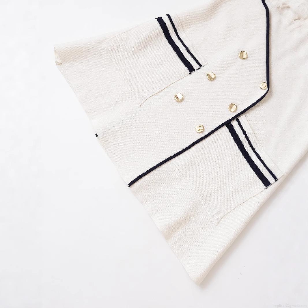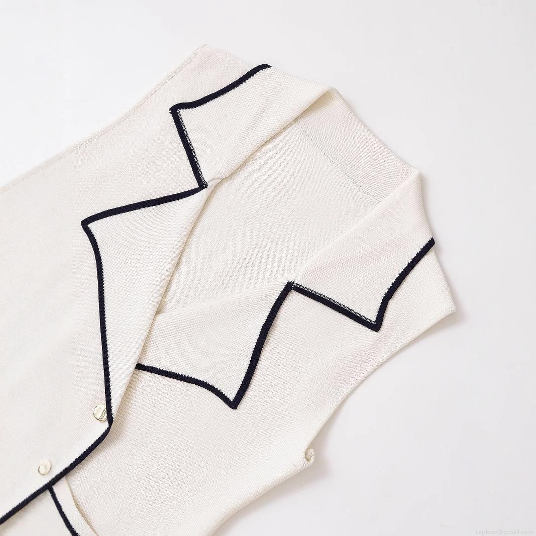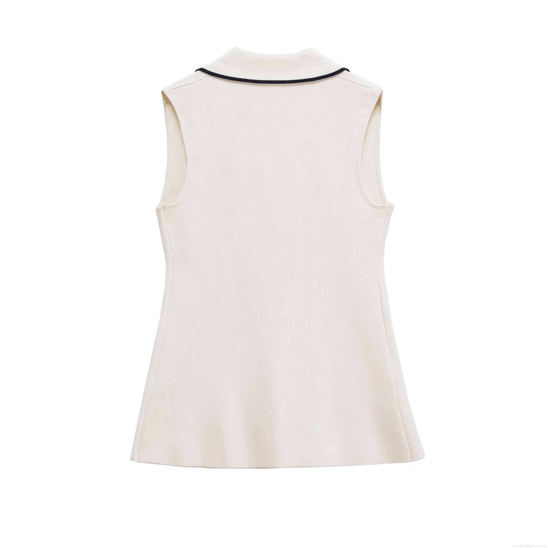 • Women Elegant Knitted Vest Sleeveless Suit Lapel Tank Top Contrast Trim Double Breasted Gold Buttons Off-White Knit Waistcoat For Party Office Casual Lady Knitwear