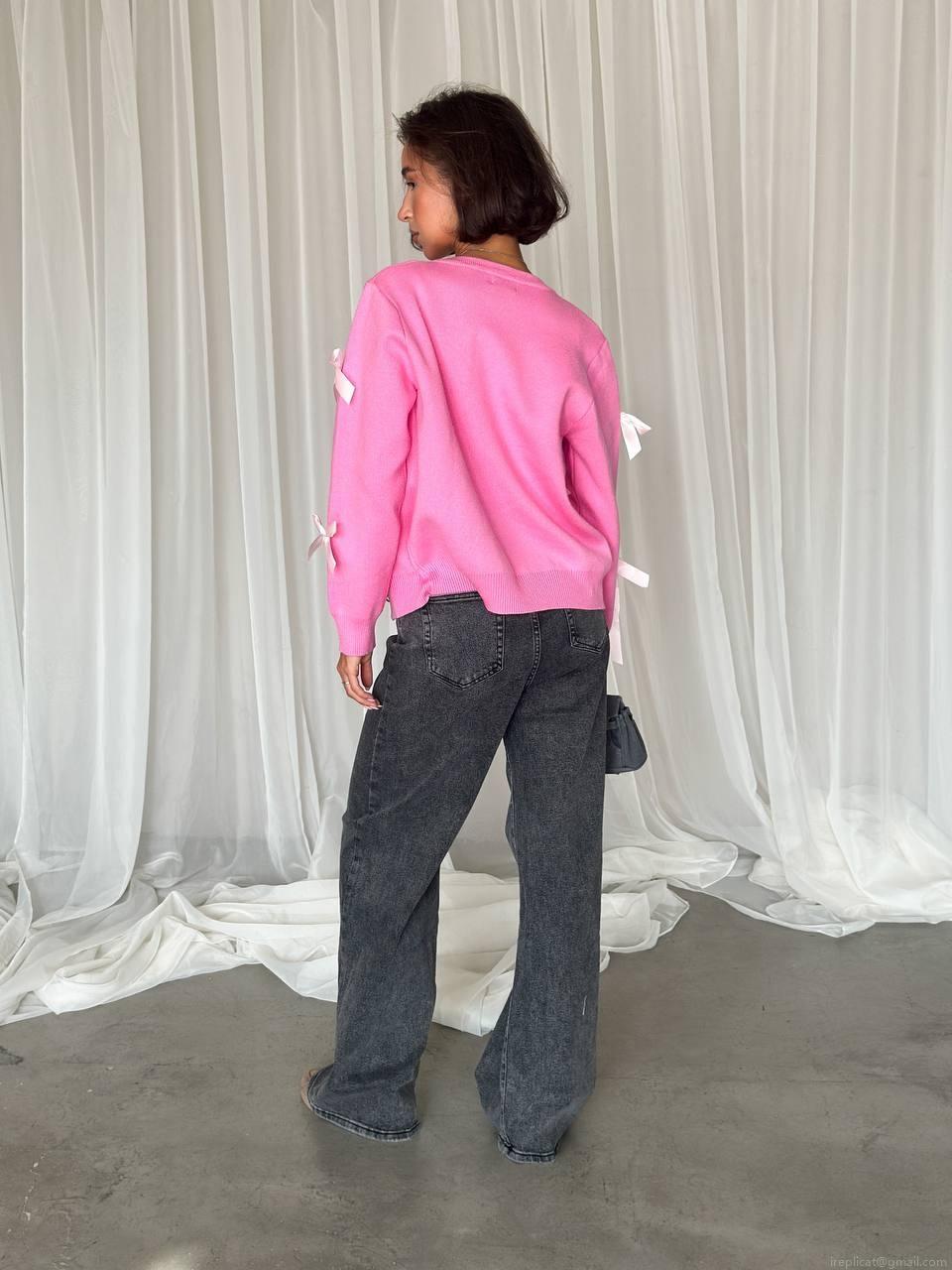 • Women Elegant Pink Knitted Cardigan Sweater With Satin Ribbon Bow Decor Long Sleeve Cotton Blend Single Breasted Loose Fit Casual Chic Tops