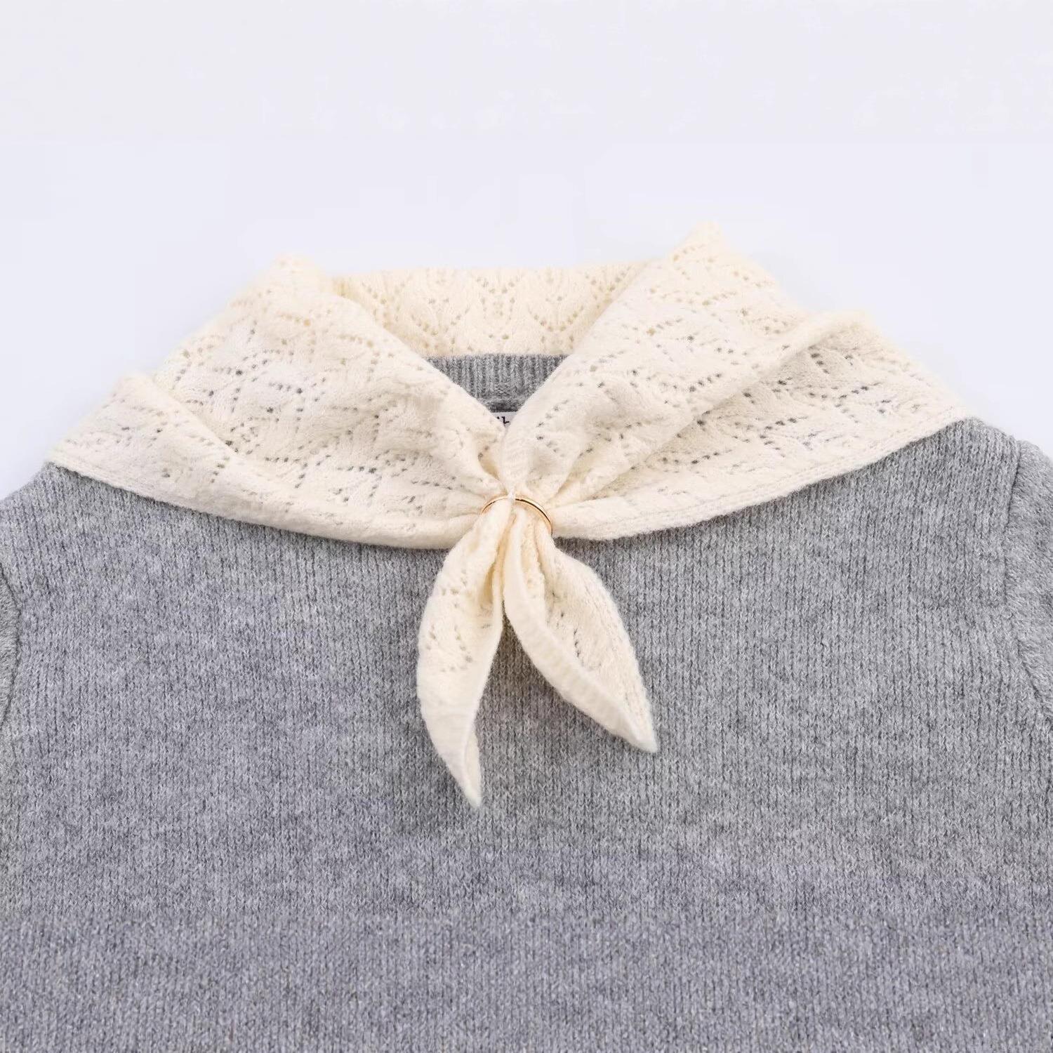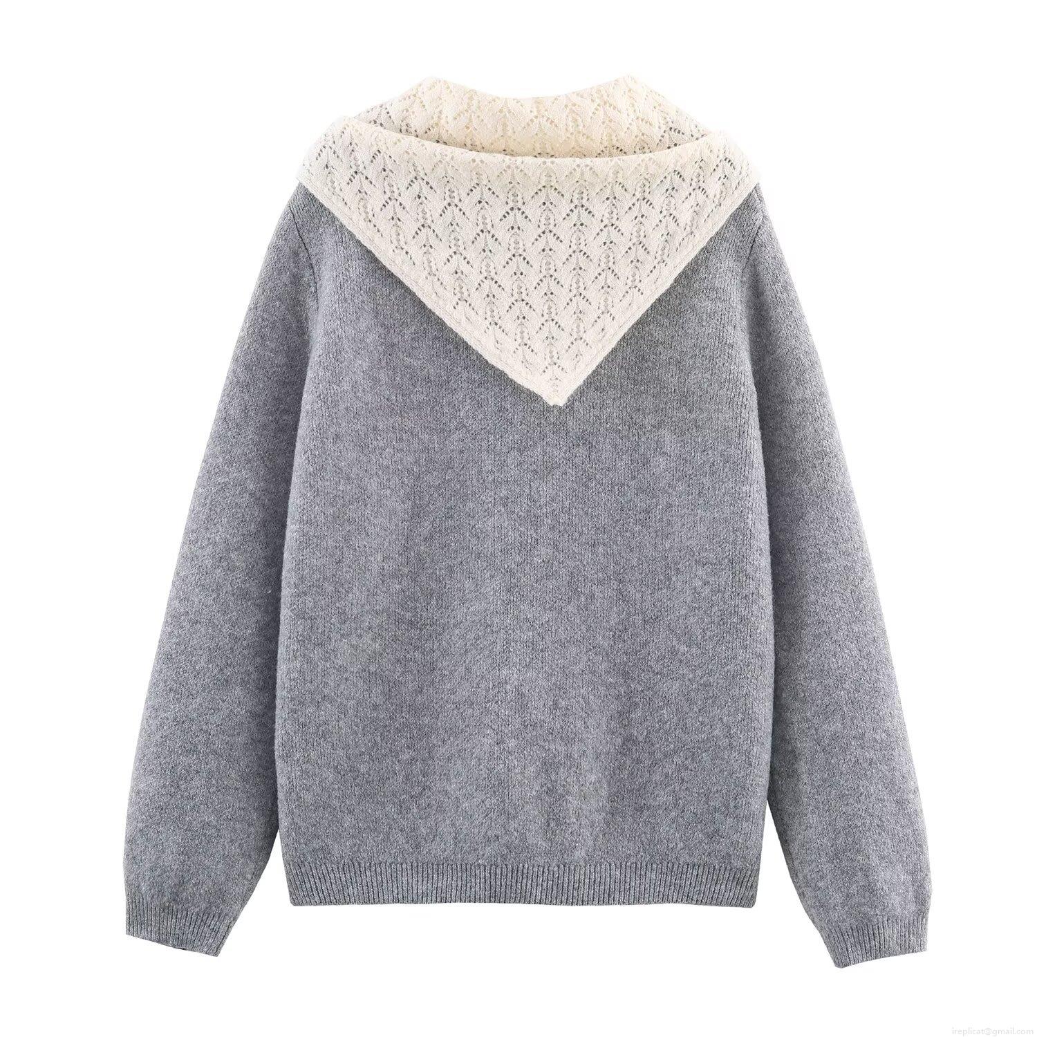Women European Knit Sweater Scarf Lace Collar Long Sleeve Pullover Autumn Winter Acrylic Polyester Knitwear Solid Color Streetwear Top