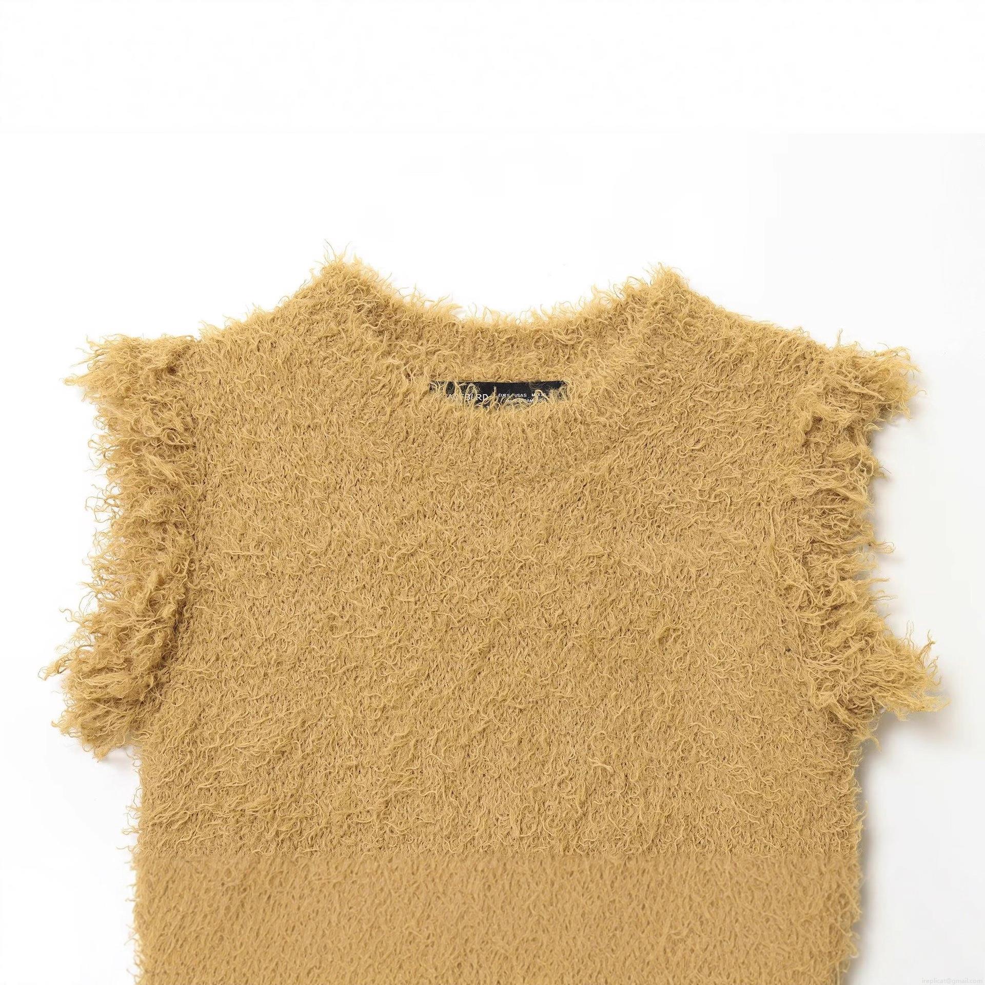 • Women Mustard Yellow Faux Fur Knitted Vest Round Neck Sleeveless Fuzzy Pullover Waistcoat Casual Streetwear Autumn Winter Soft Plush Top