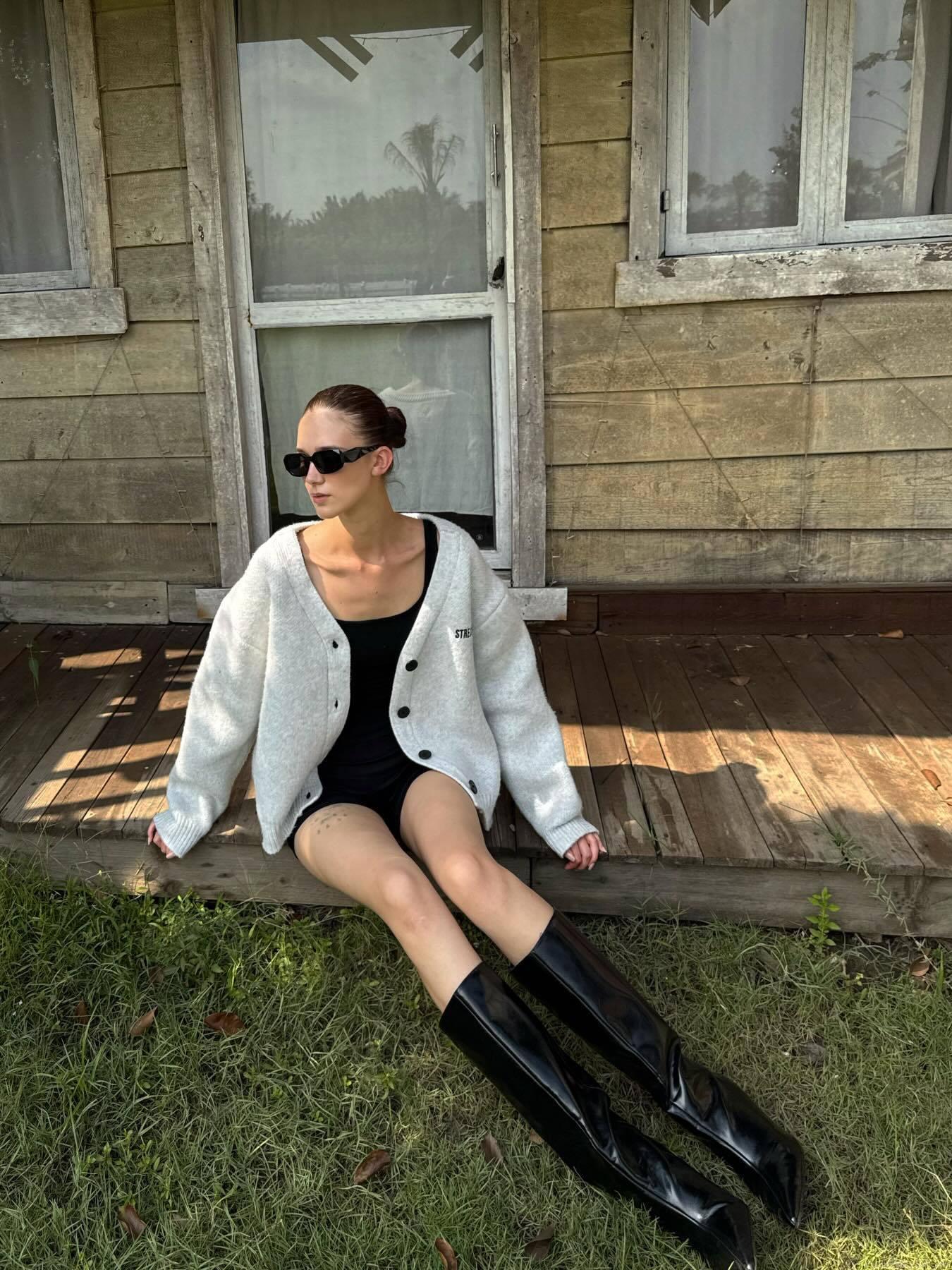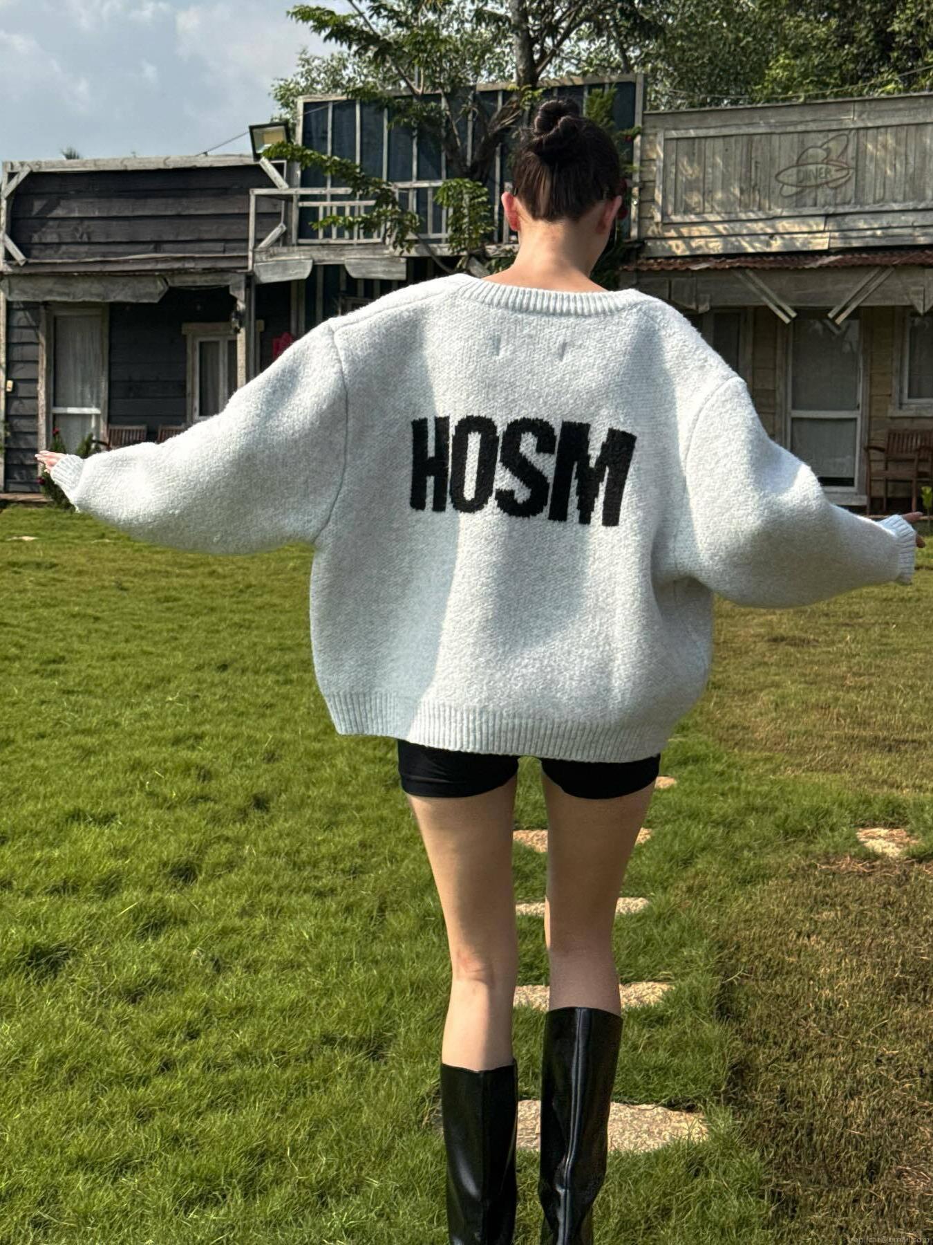 • Women Oversized Knit Cardigan Letter Print Single Breasted Cotton Blend Sweater Coat Loose Fit Autumn Winter Streetwear Casual Top