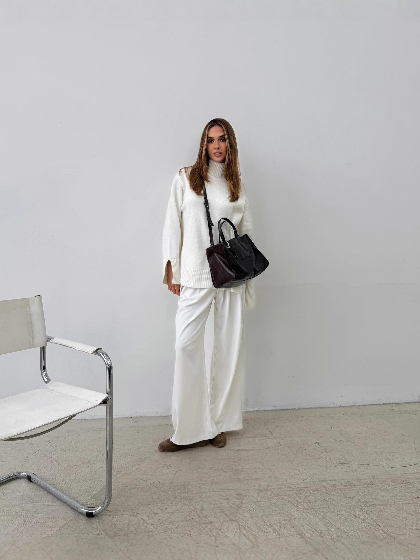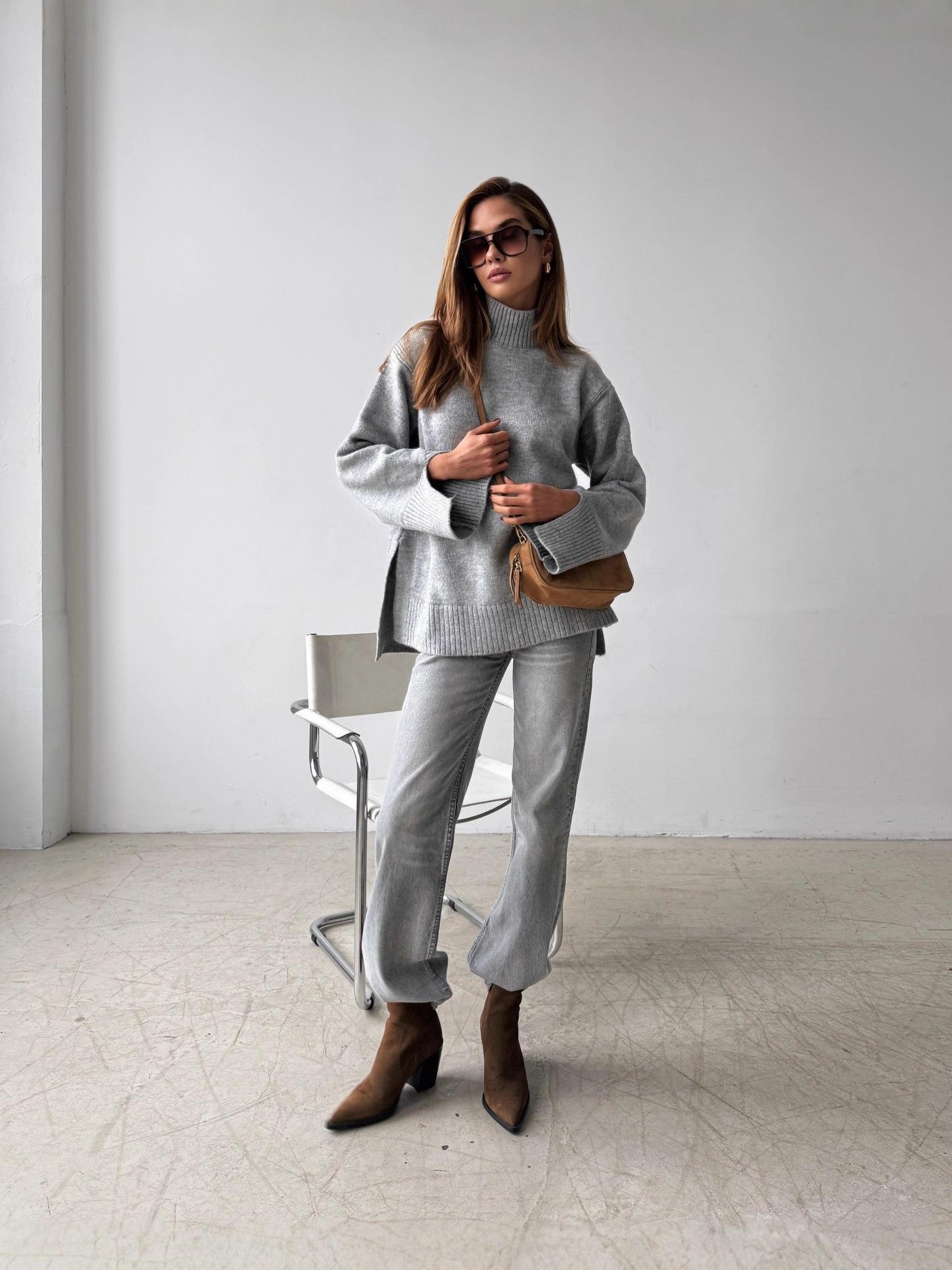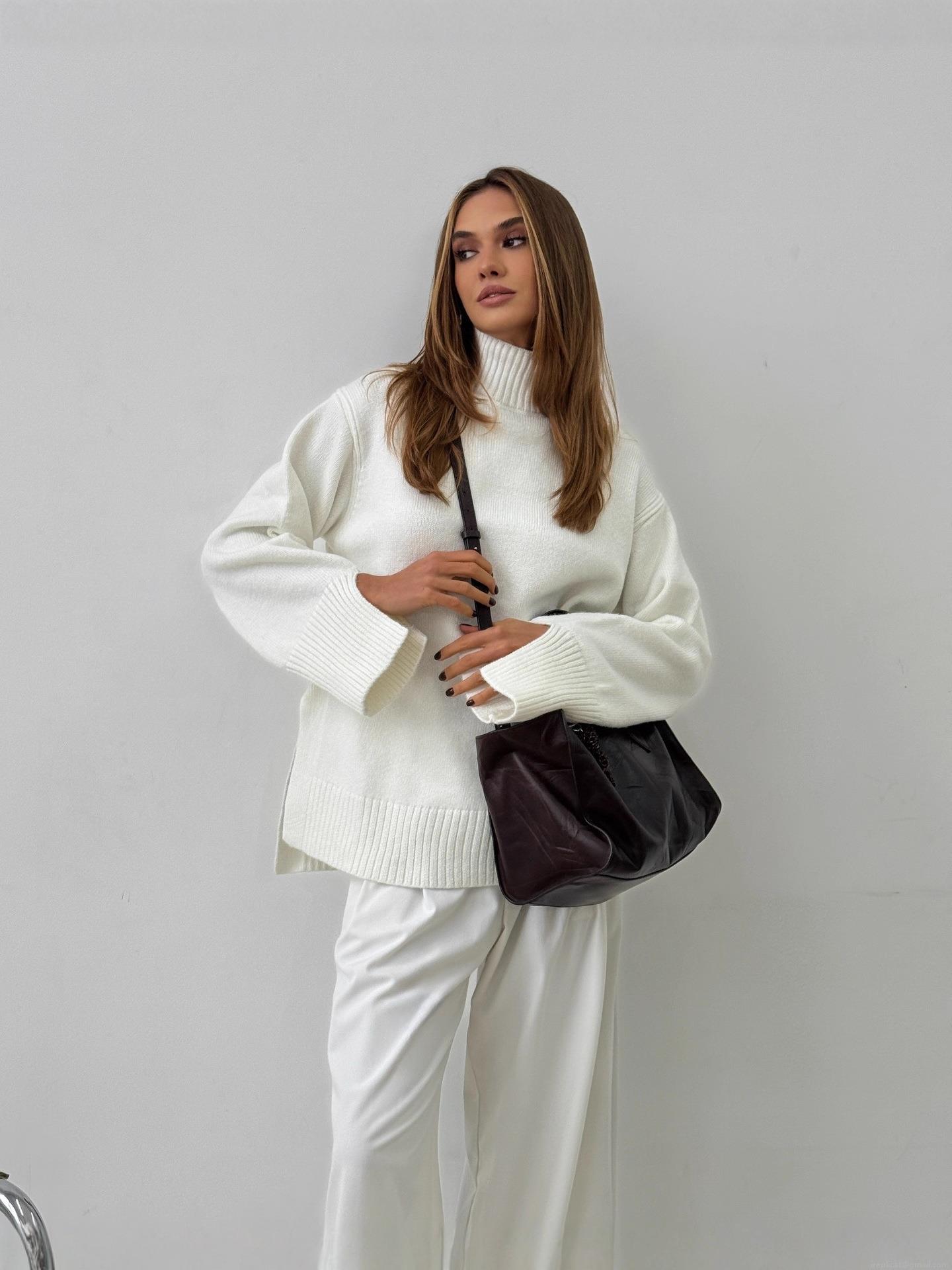 • Women Oversized Turtleneck Knit Sweater Cotton Blend Long Sleeve Pullover With Side Slit For Autumn Winter Casual Streetwear Knitwear