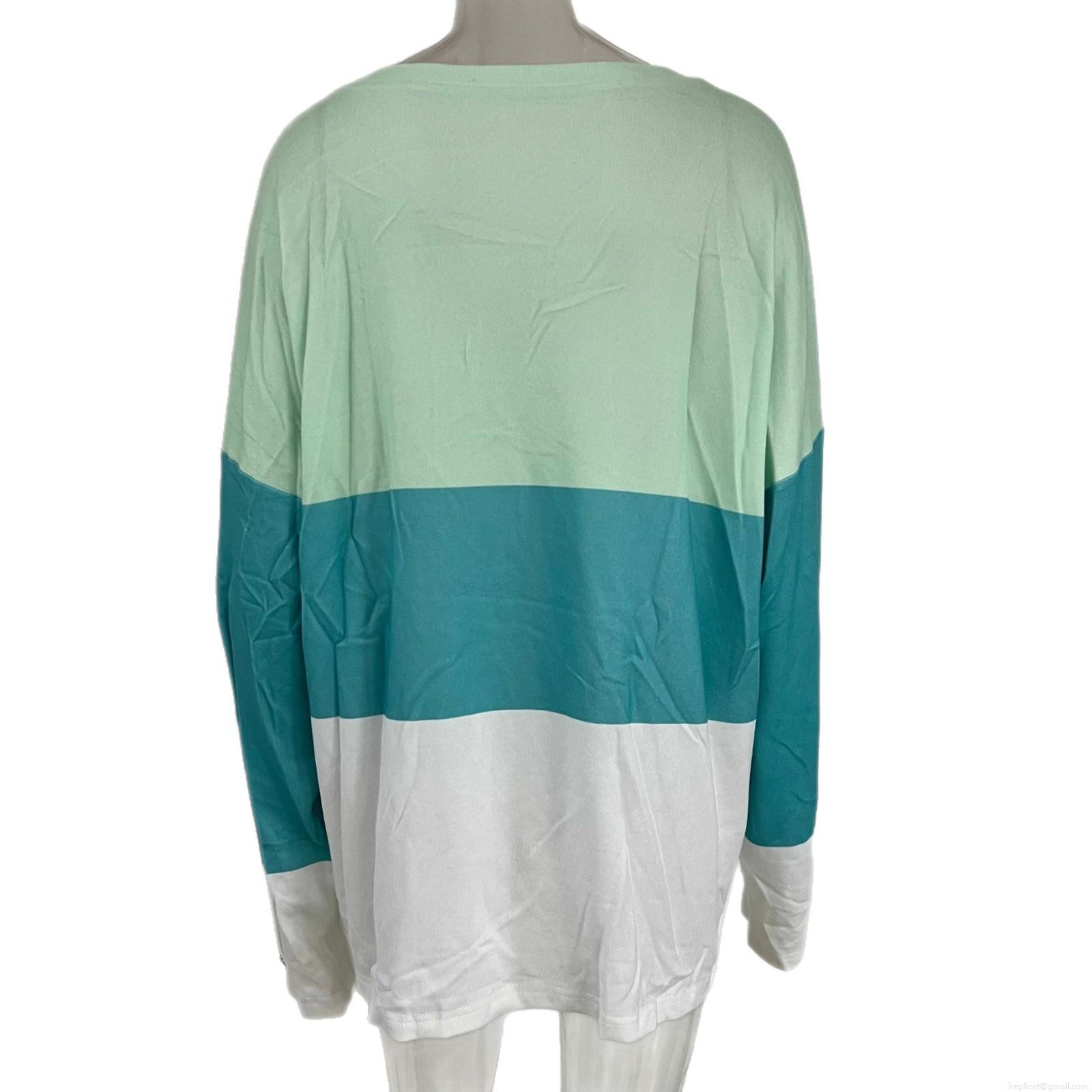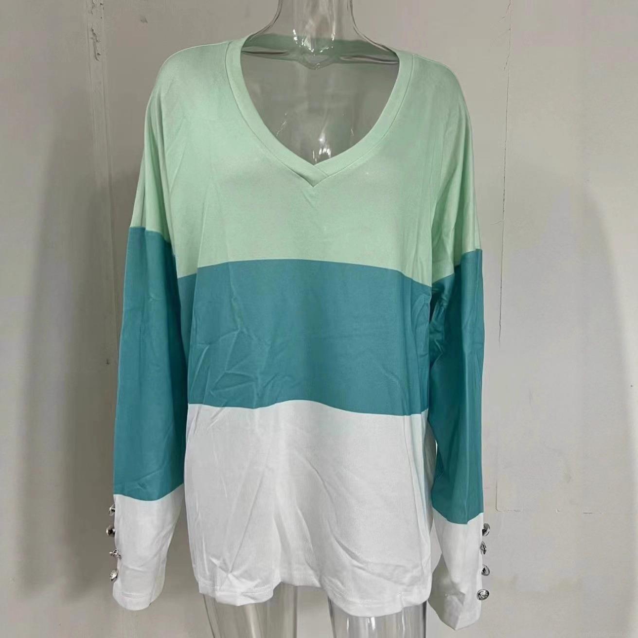 Women Plus Size Color Block V-Neck Knit Sweater Long Sleeve Button Cuff Splicing Casual Pullover Top Autumn Winter Polyester Spandex Jumper