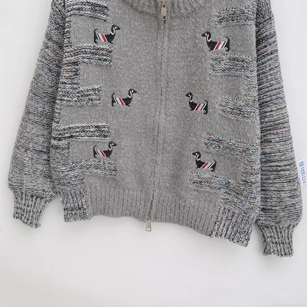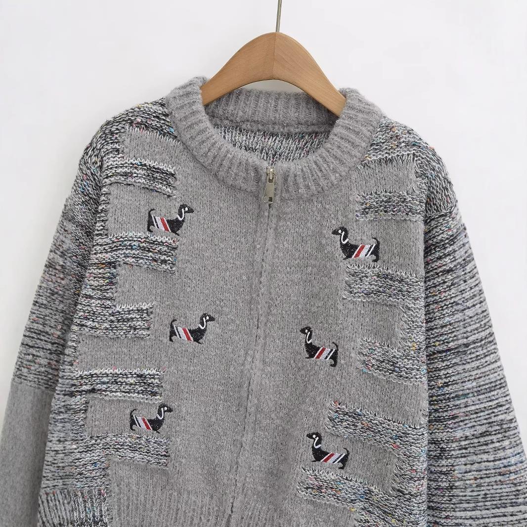 Solid Color, Stripe, Embroidery, Zipper, Chunky Knit, Dachshund Embroidery, Tricolor Ribbon