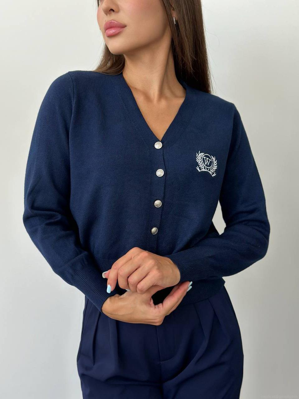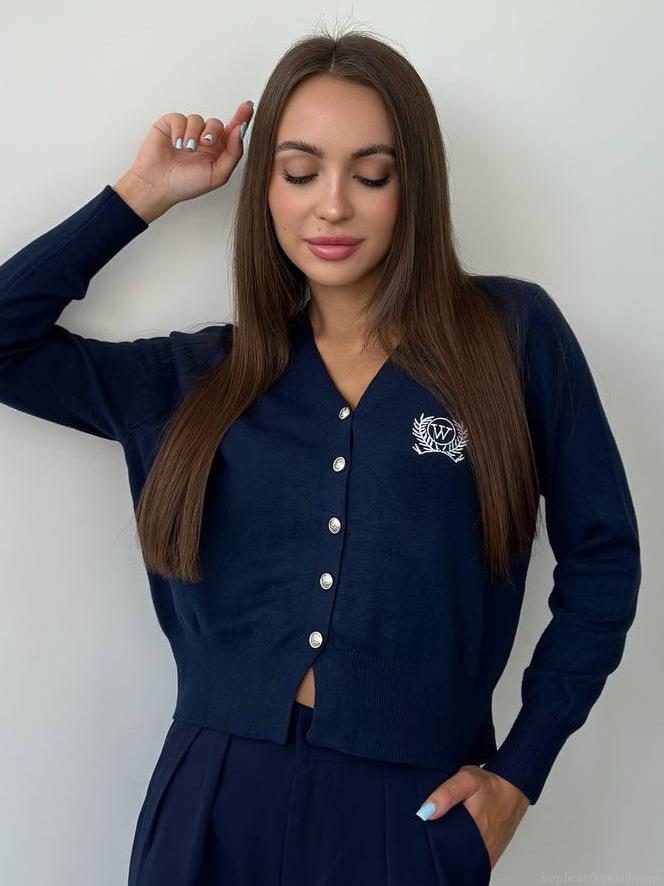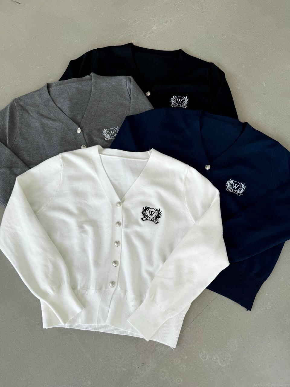 • Women Preppy Style V-Neck Knitted Cardigan Sweater Cotton Acrylic Blend Embroidered W Logo Single Breasted Short Jacket For School Office Daily Casual Outwear