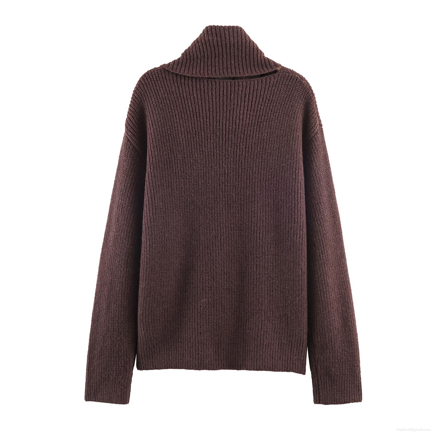 • Women Pullover Knitted Sweater With Scarf Collar European Style Solid Color Ribbed Long Sleeve Jumper For Autumn Winter Casual Streetwear