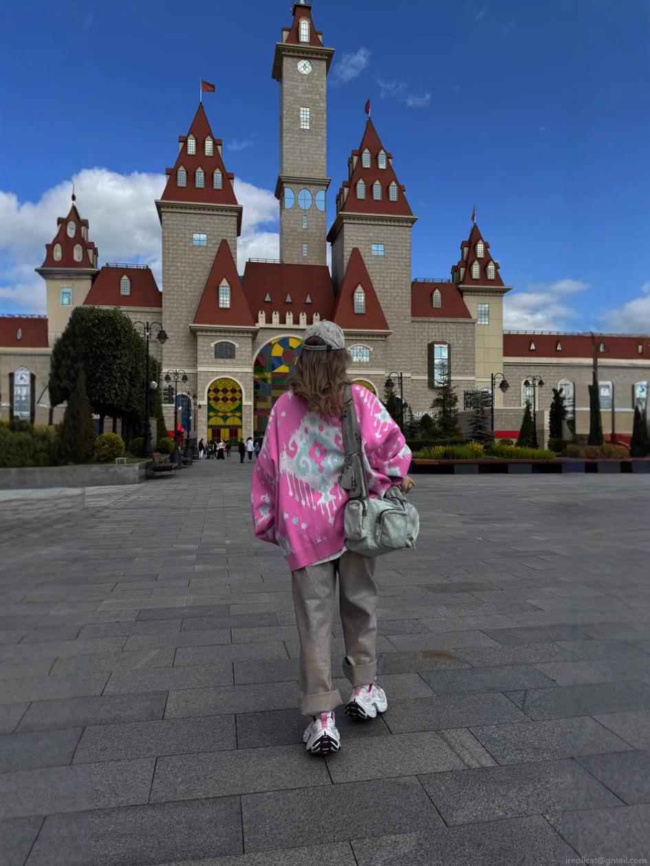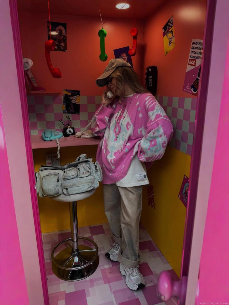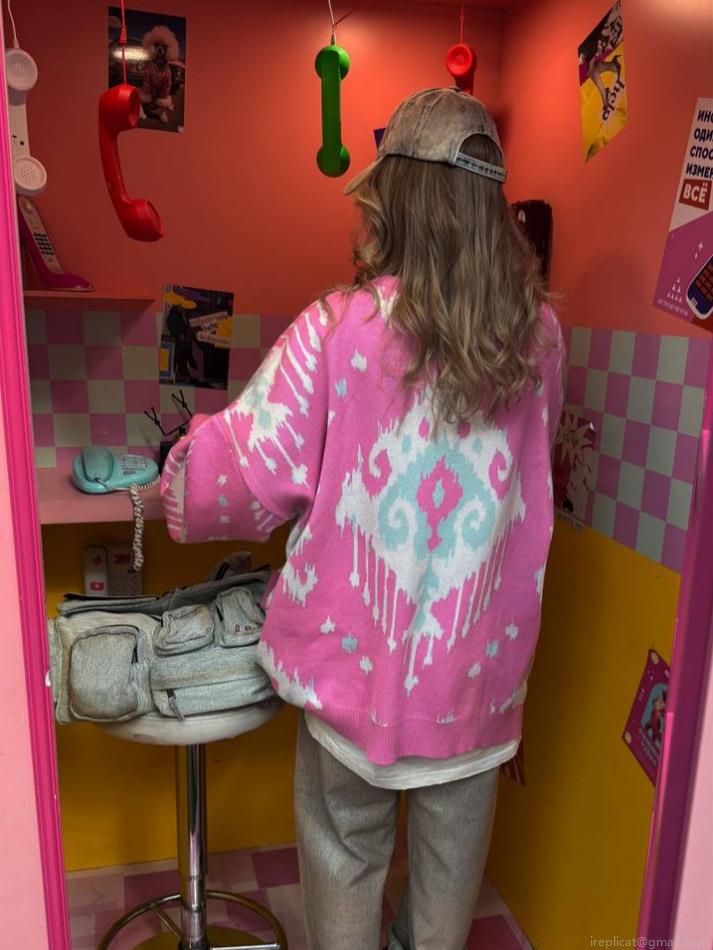 • Women Retro Knitted Sweater Pink Color Block Jacquard Cotton Blend Crew Neck Long Sleeve Loose Pullover Jumper Casual Fall Winter Fashion Knitwear Top