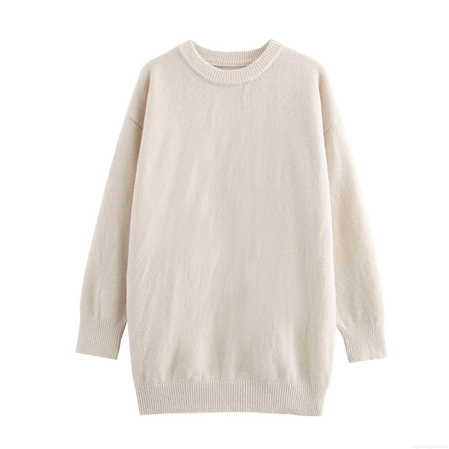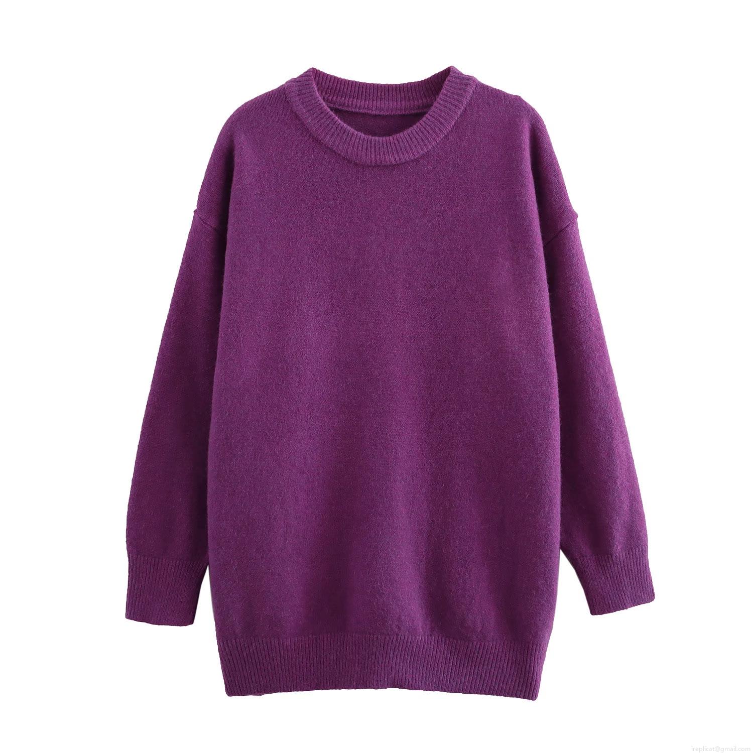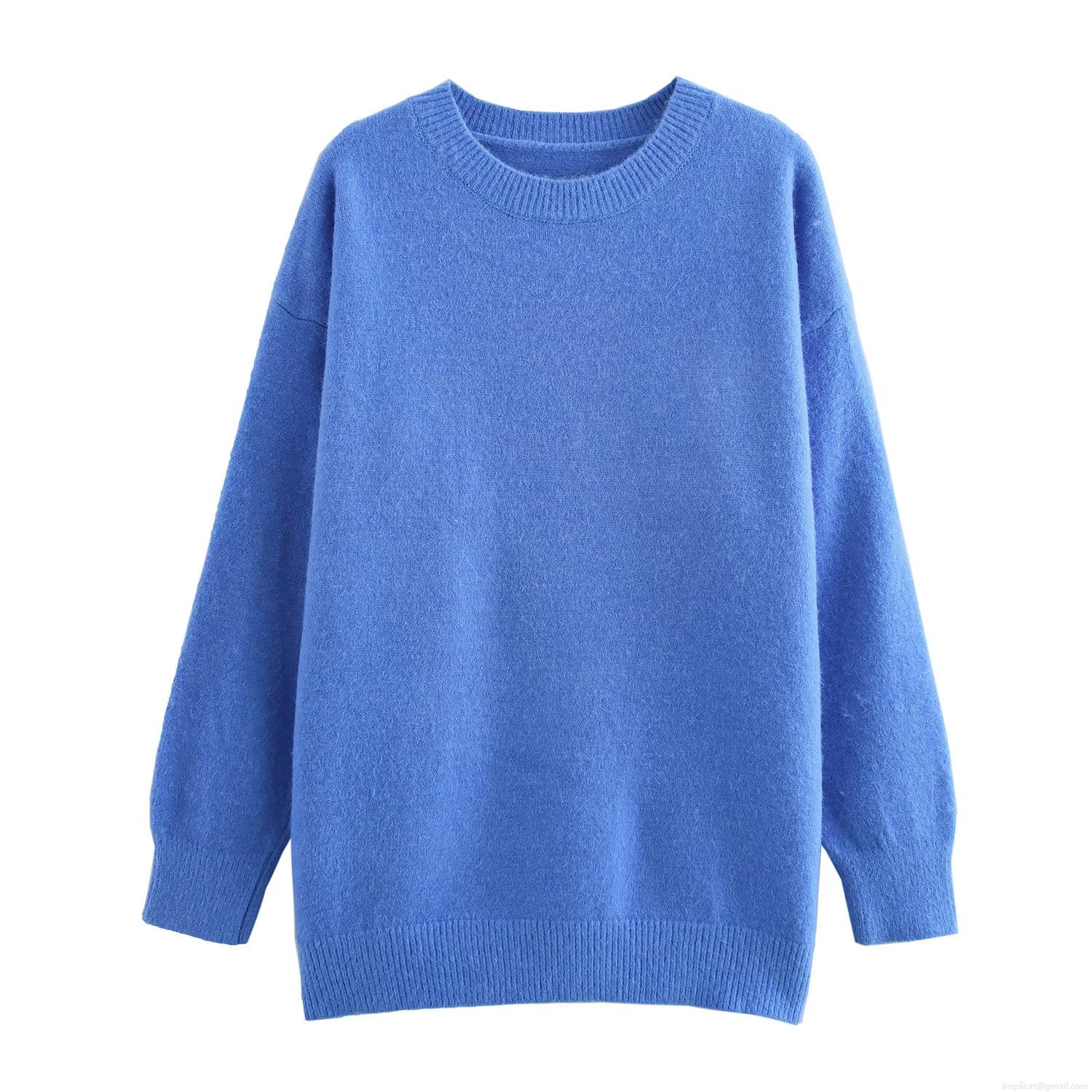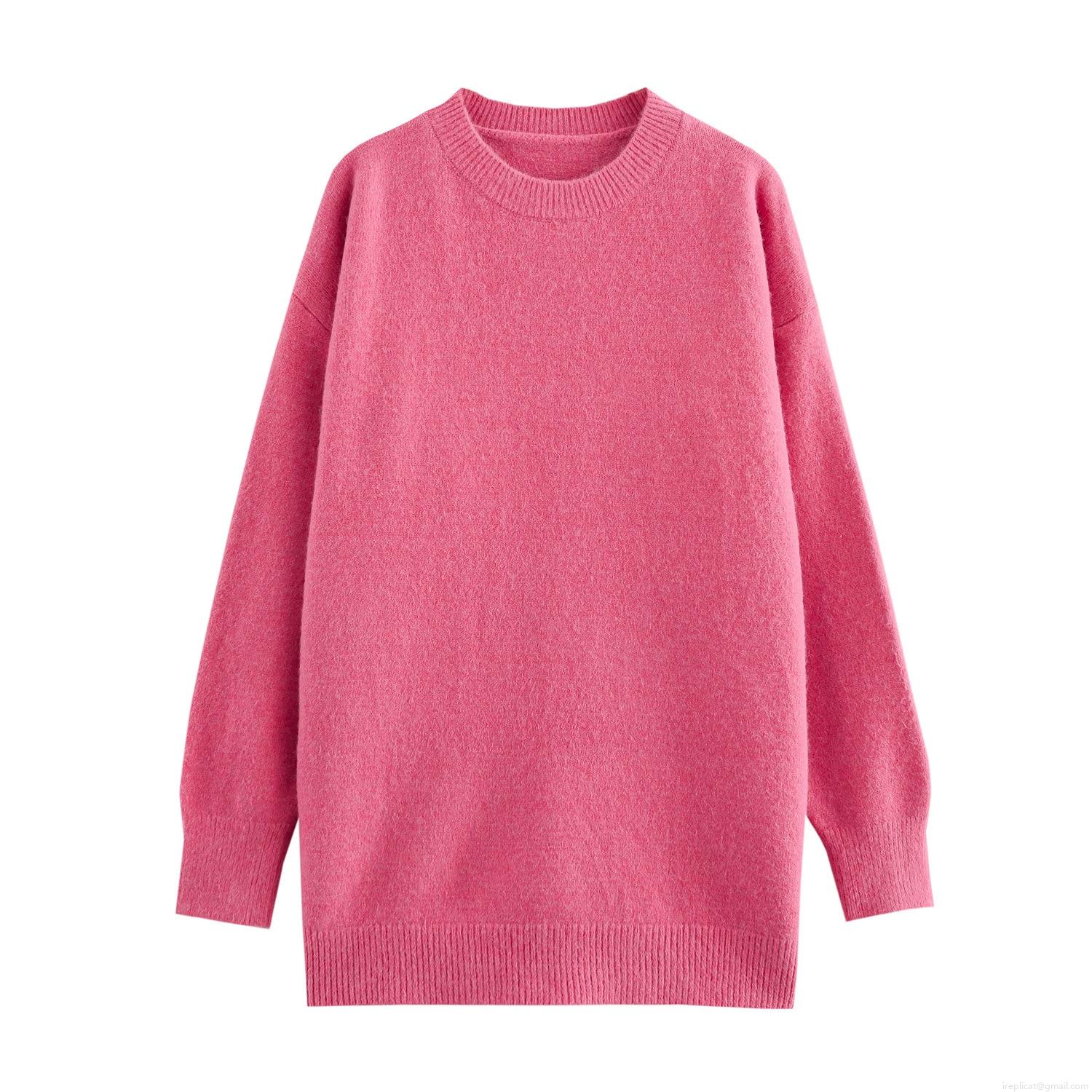 • Women Round Neck Long Sleeve Pullover Knit Sweater Casual Loose Fit Polyester Blend Winter Warm Top Solid Color Streetwear For Ladies