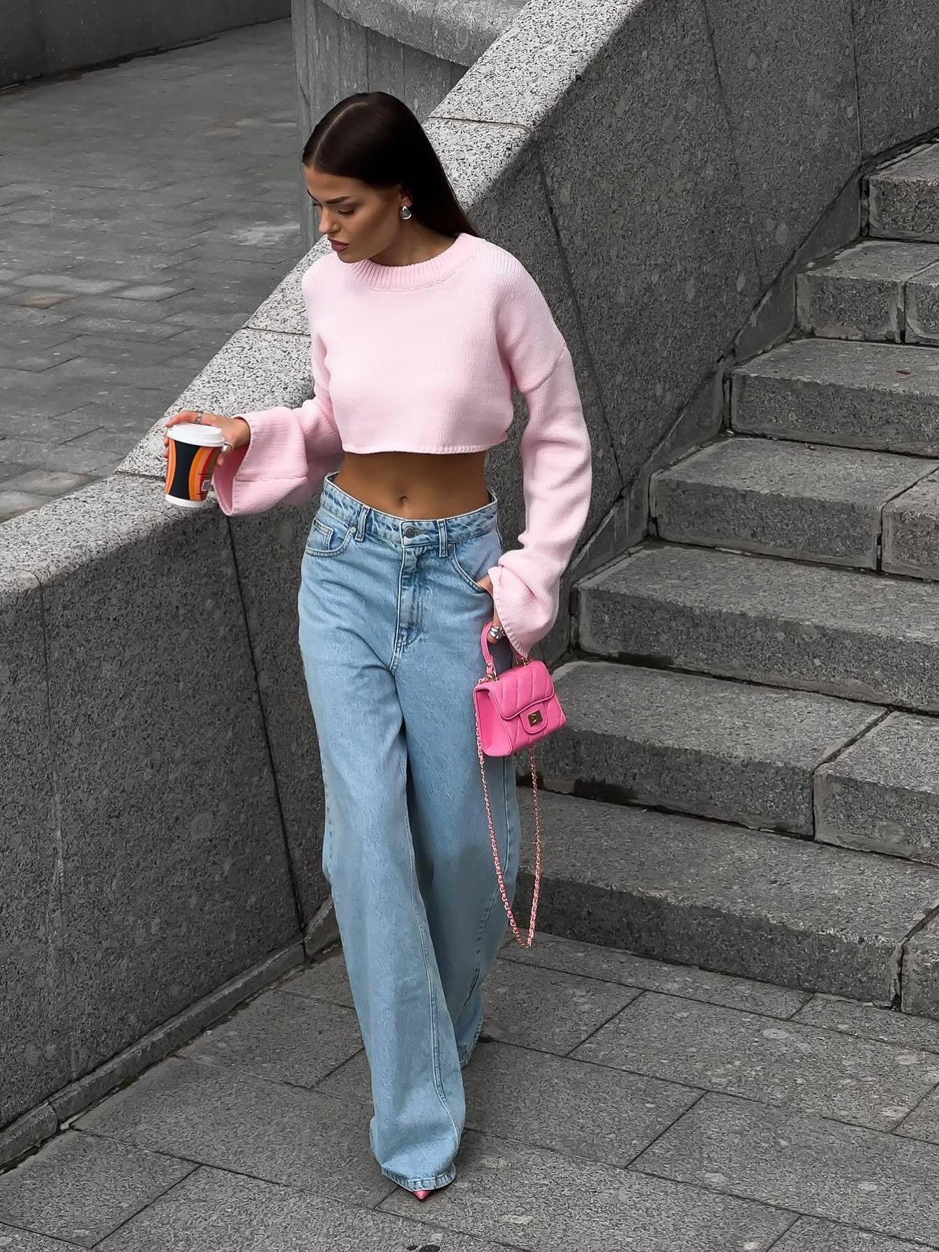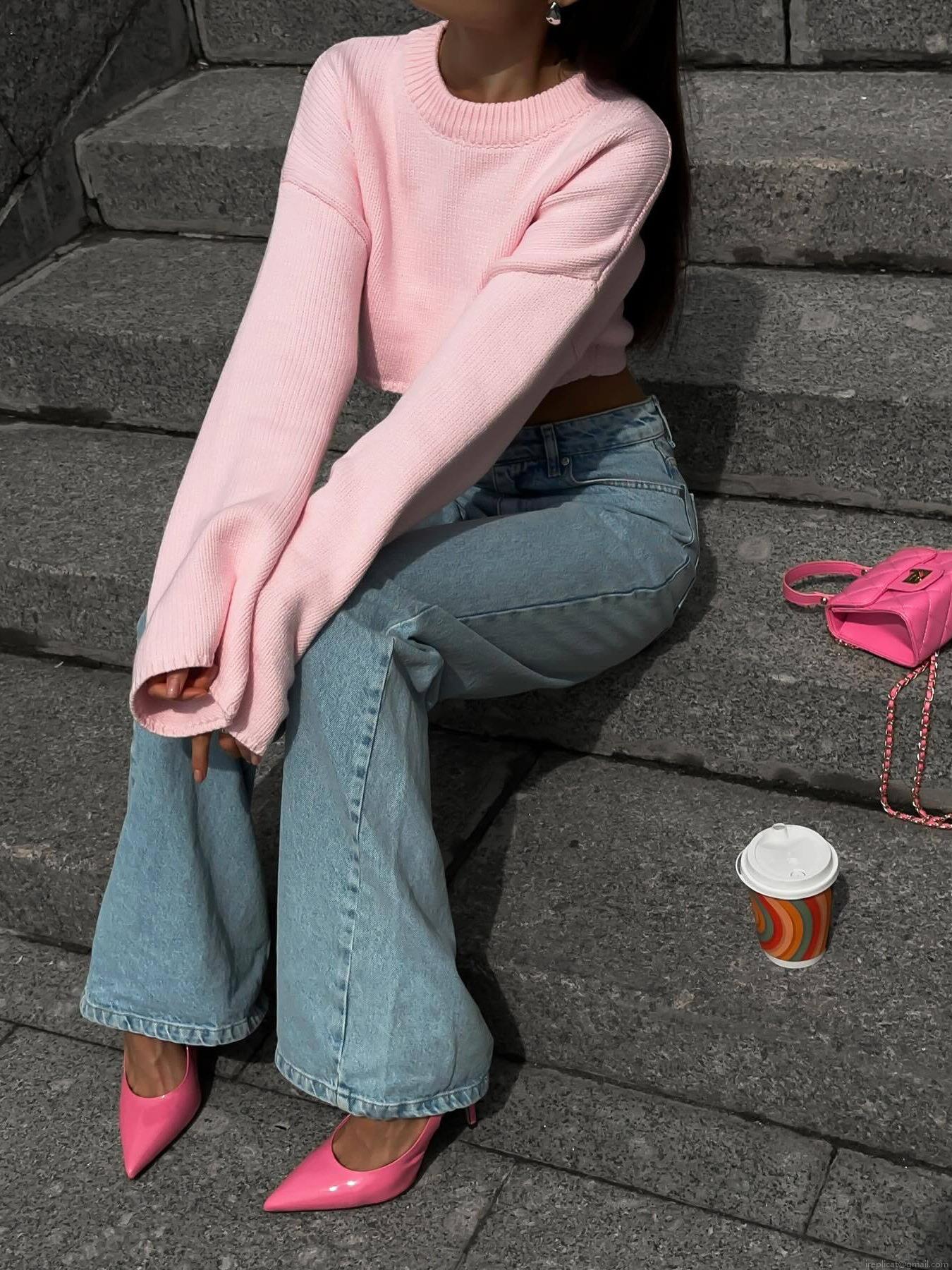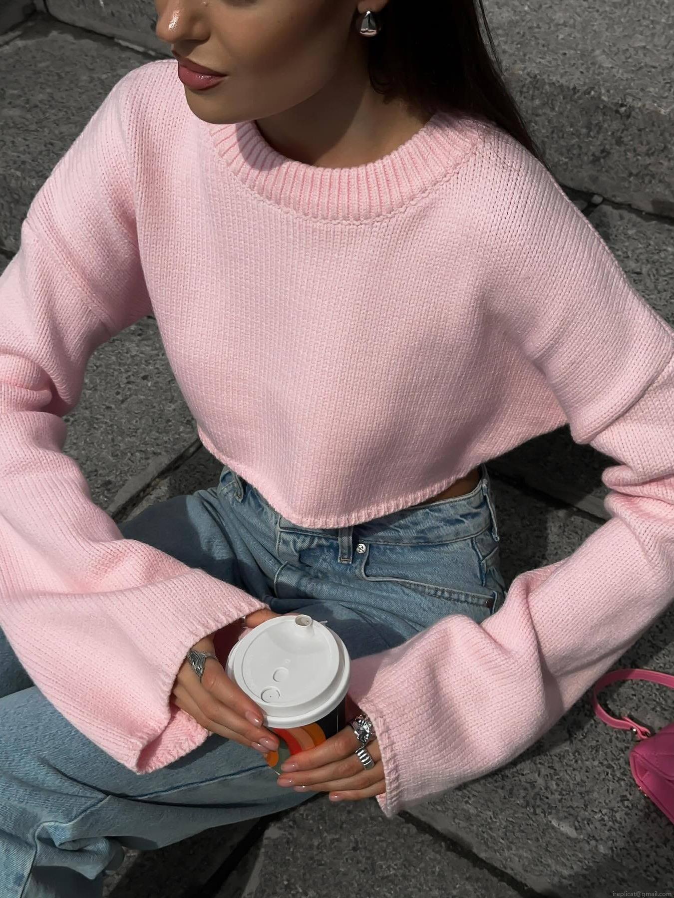 • Women Sexy Crop Knit Sweater Cotton Viscose Blend Round Neck Long Sleeve Pullover Autumn Fashion Streetwear Slim Fit Knitwear Top For Women