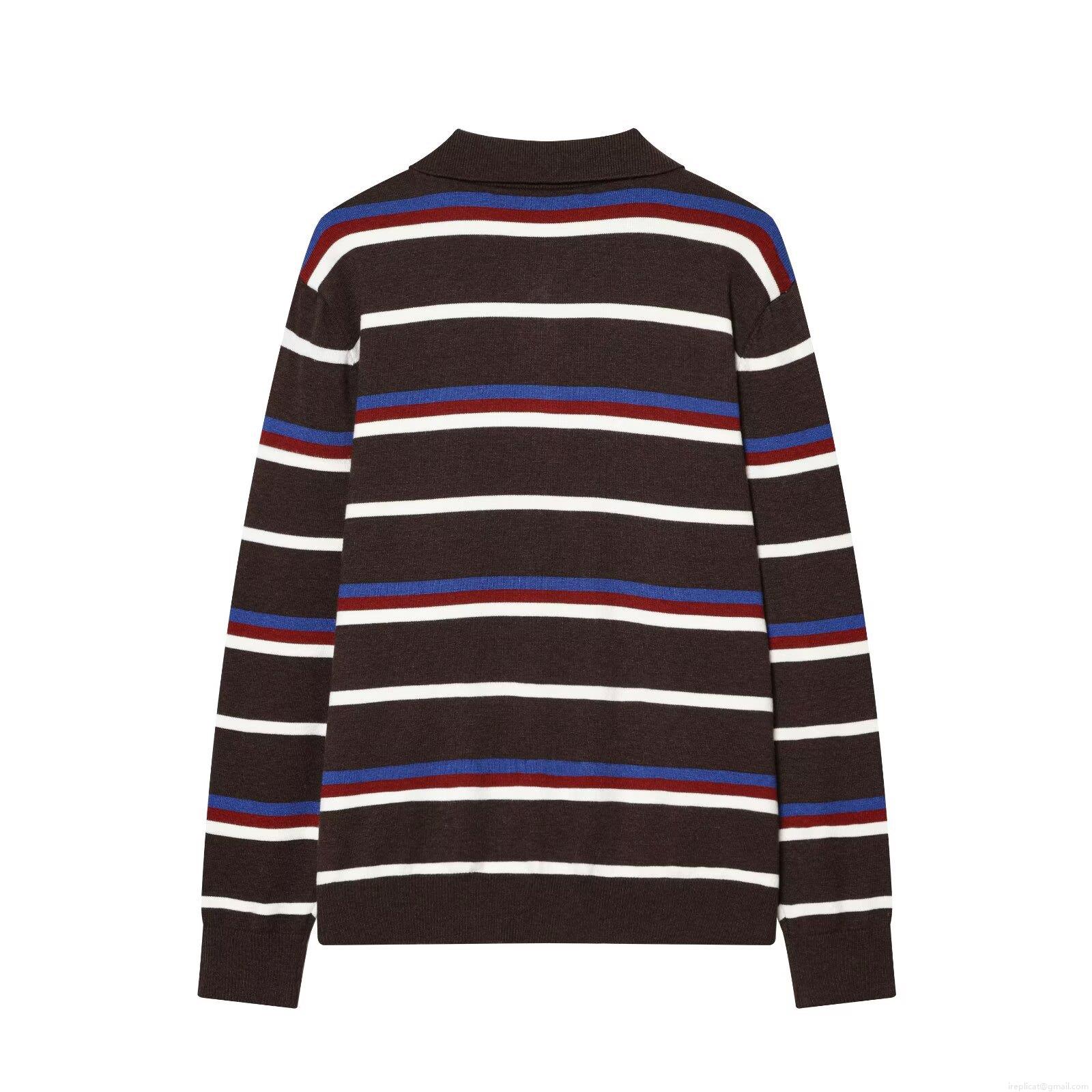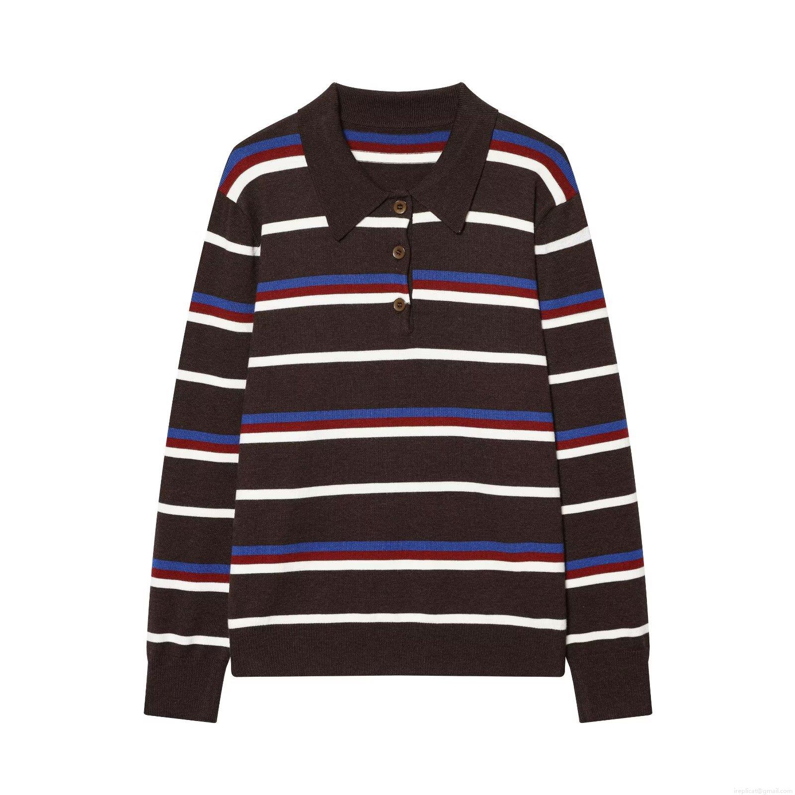 • Women Striped Polo Collar Knit Sweater Casual Long Sleeve Colorblock Pullover Top For Daily Streetwear European Style Soft Knitwear