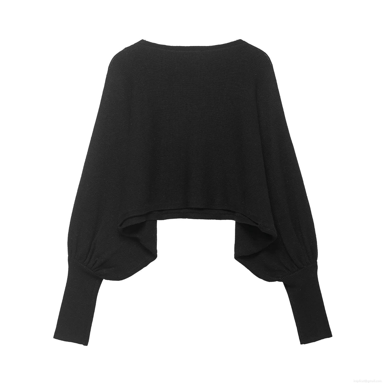 • Women Western Style Solid Color Short Knit Sweater Pullover With Round Neck And Lantern Sleeve 100% Polyester Casual Loose Fit Winter Autumn Top