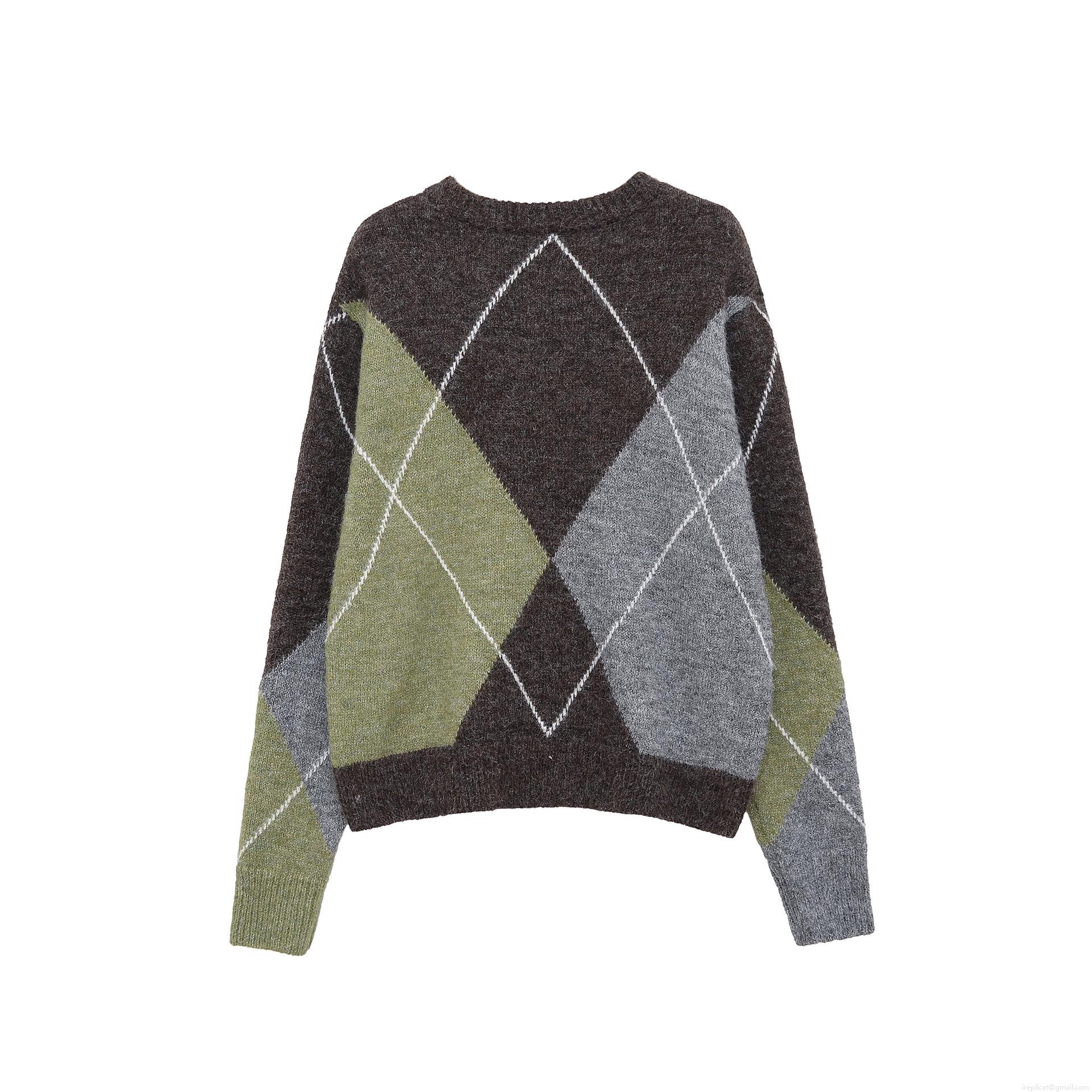 • Women's Argyle Knit Sweater Polyester V-Neck Long Sleeve Contrast Color Pullover Top For Autumn Winter Daily Wear Casual Street Style Fashion Knitwear