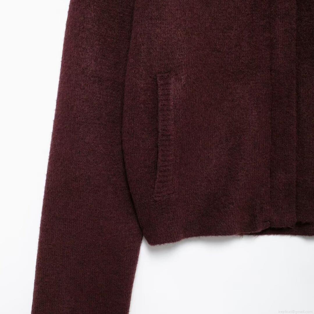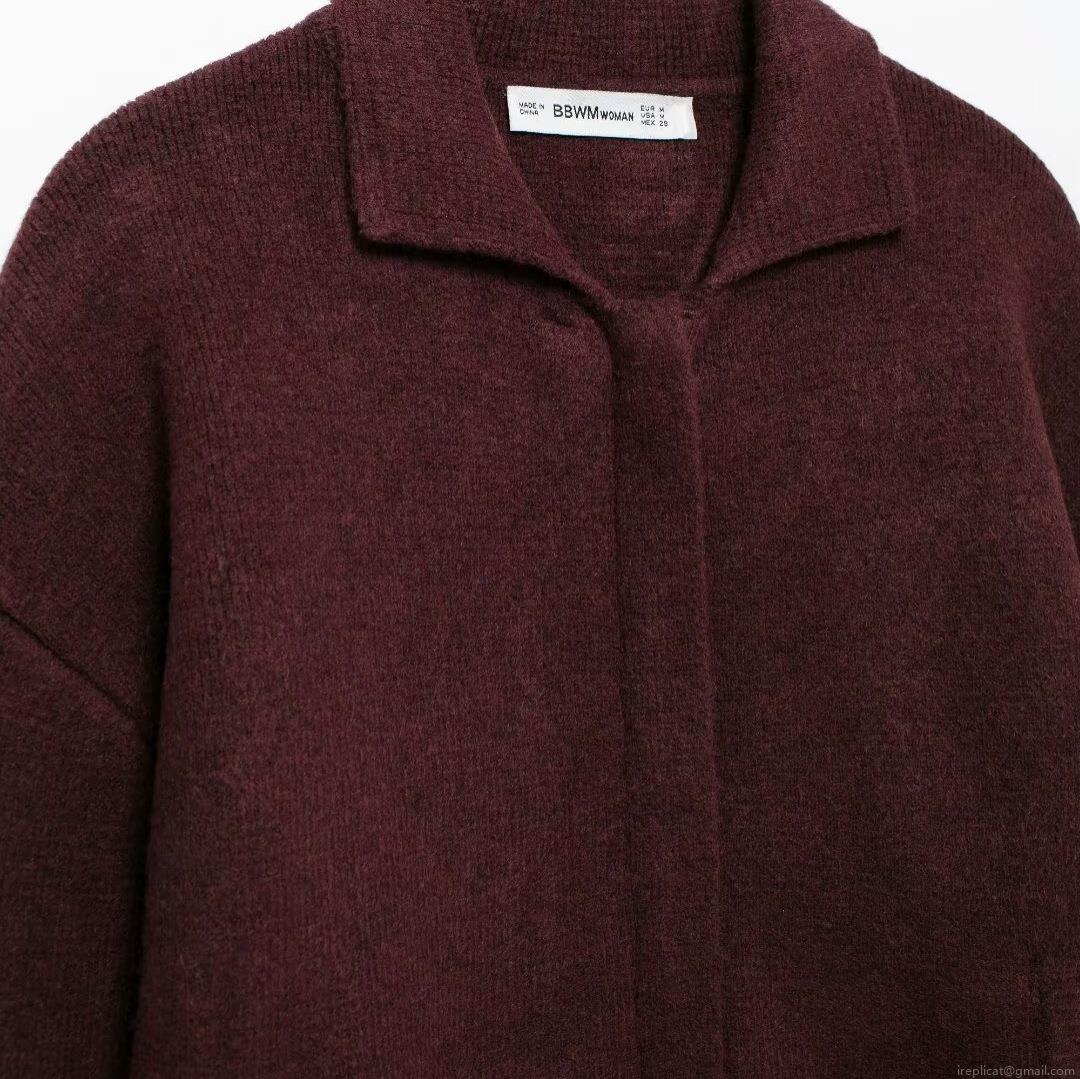 Women's Autumn Winter Burgundy Red Knit Sweater Jacket Lapel Zipper Cardigan Loose Casual Long Sleeve Outwear Coat For Women