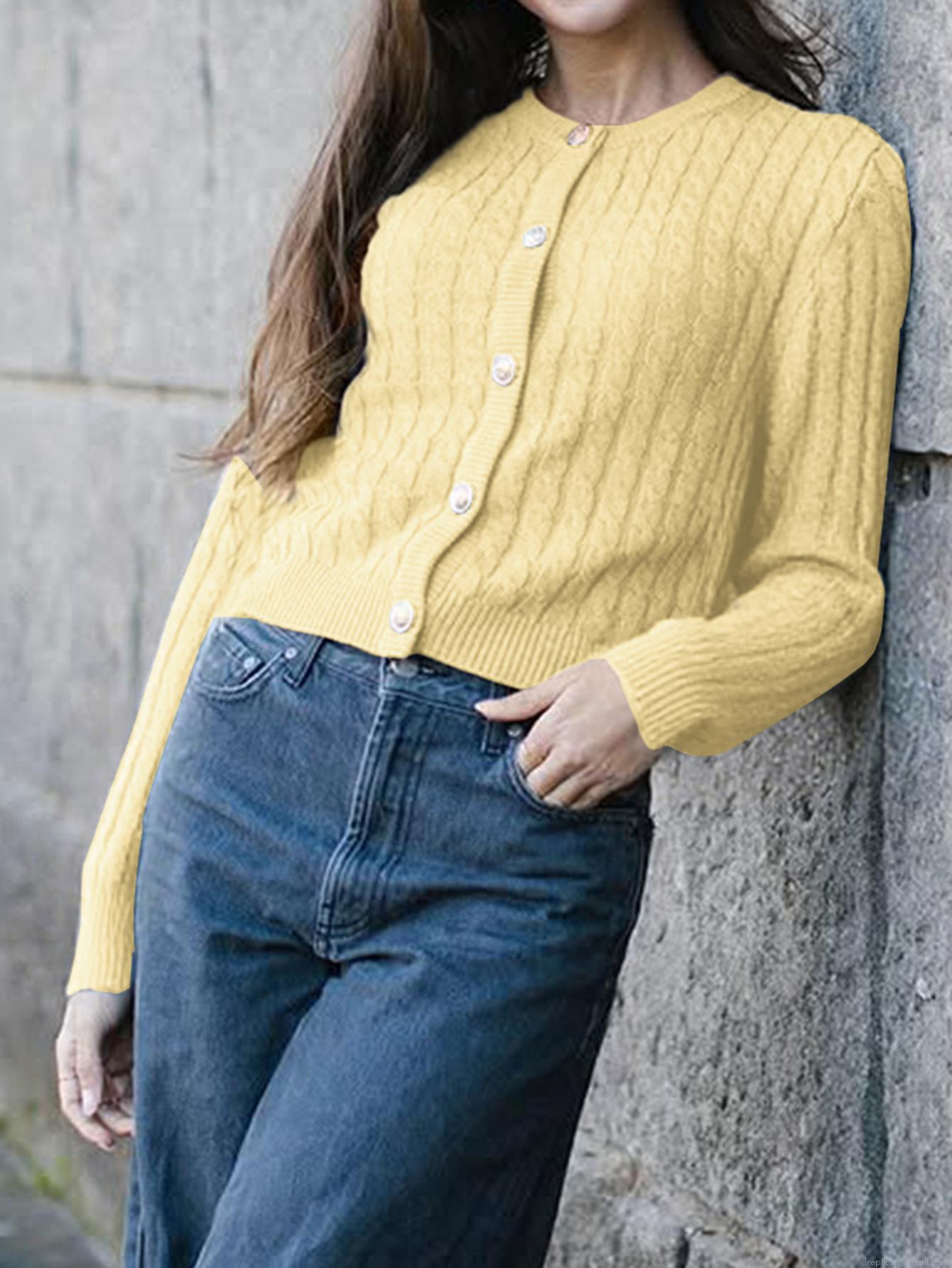 • Women's Cable Knit Cardigan Sweater Round Neck Button Down Long Sleeve Acrylic Blend Casual Knitwear Fashion Fall Winter Tops