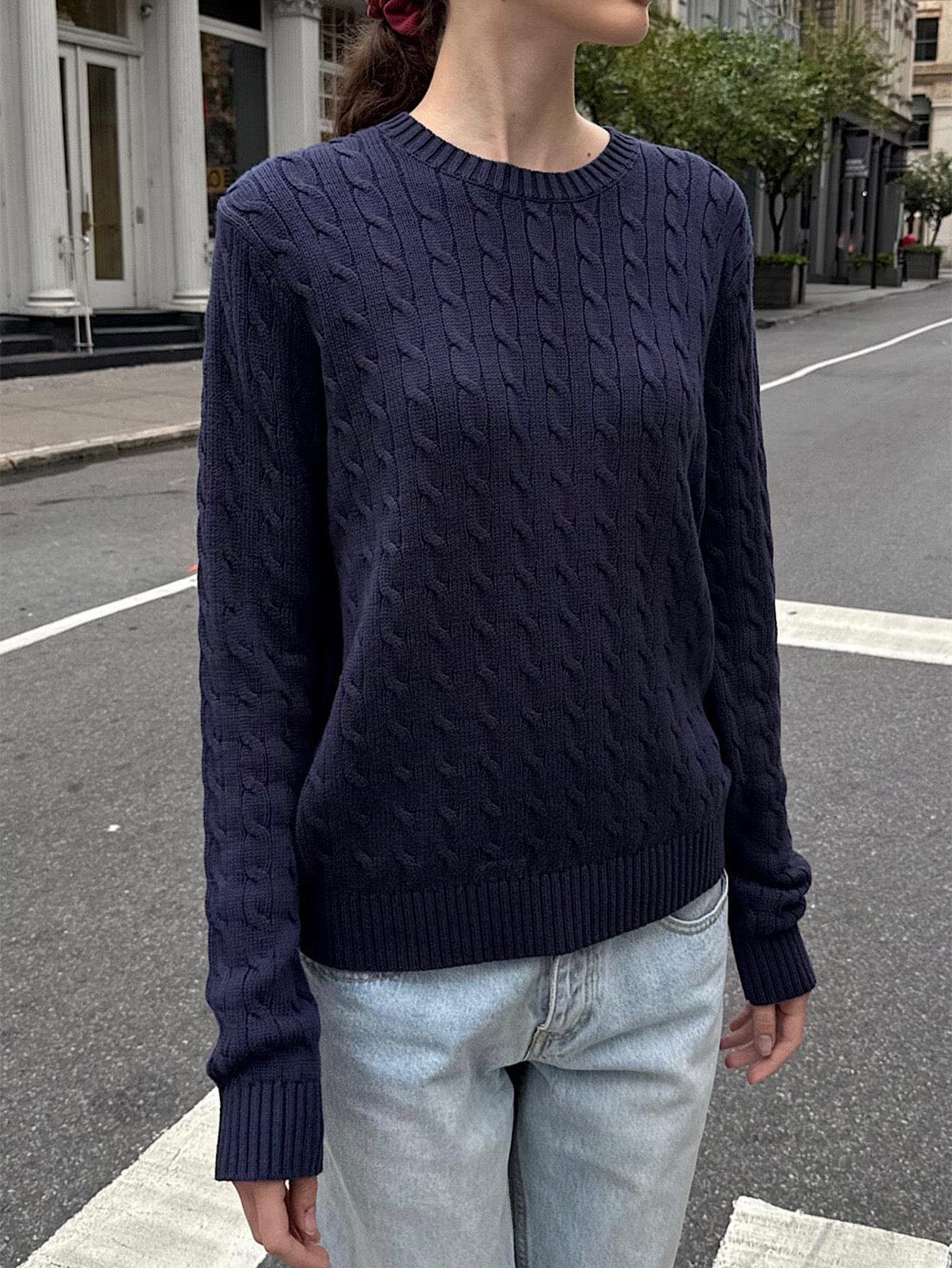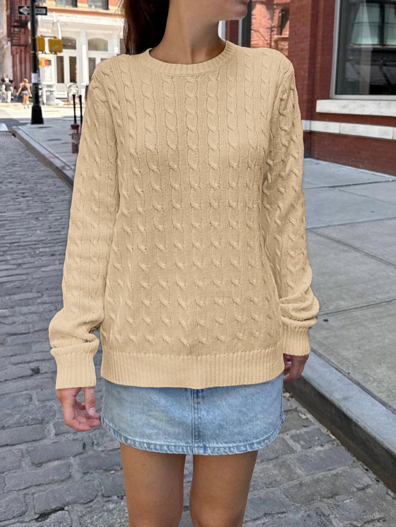 • Women's Cable Knit Long Sleeve Sweater Crewneck Casual Loose Pullover Solid Color Viscose Blend Knitwear Top for Autumn Winter