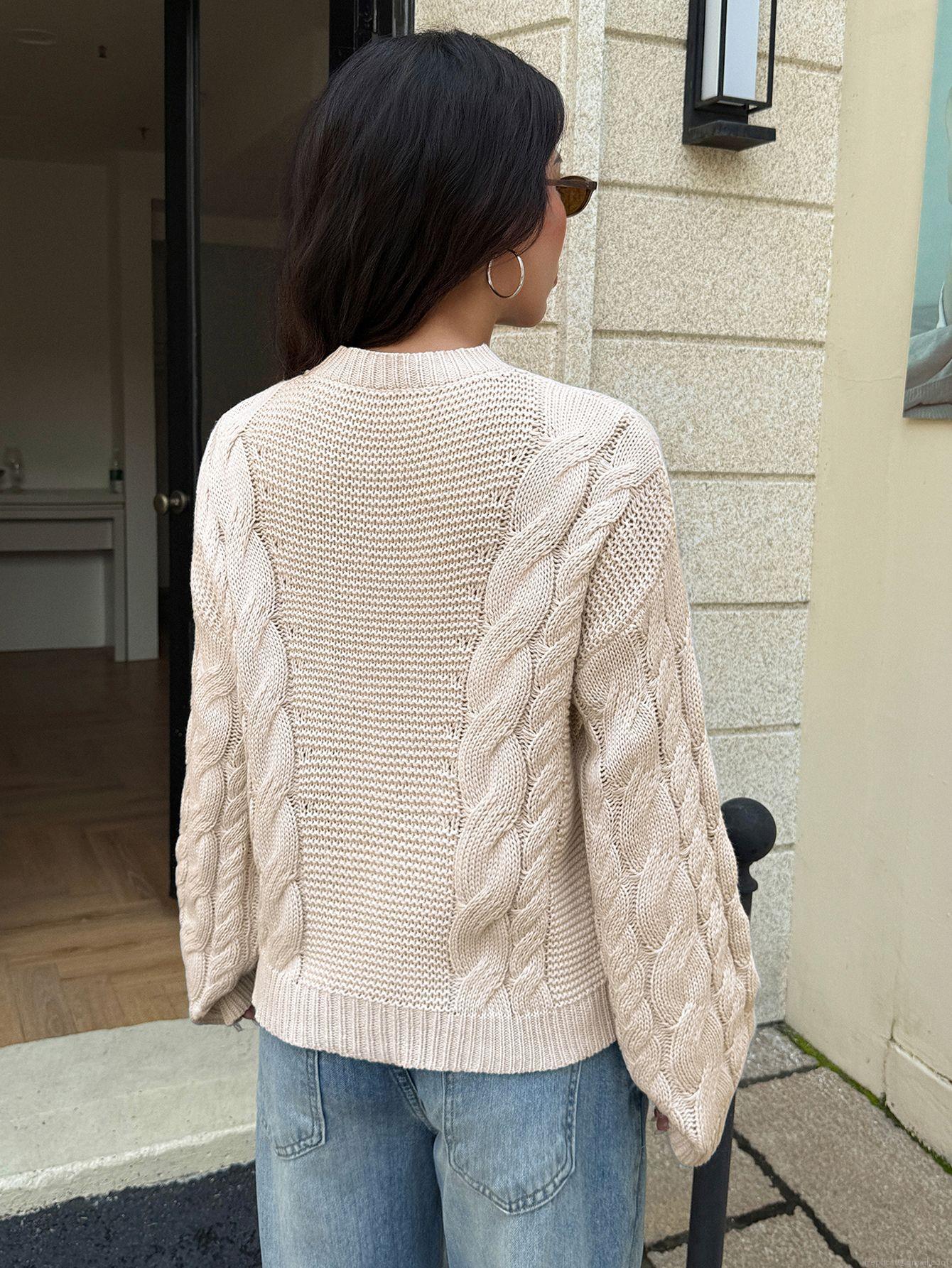• Women's Cable Knit Sweater Casual Loose Round Neck Long Sleeve Pullover Soft Warm Knitwear Solid Color Autumn Winter Fashion Jumper For Ladies