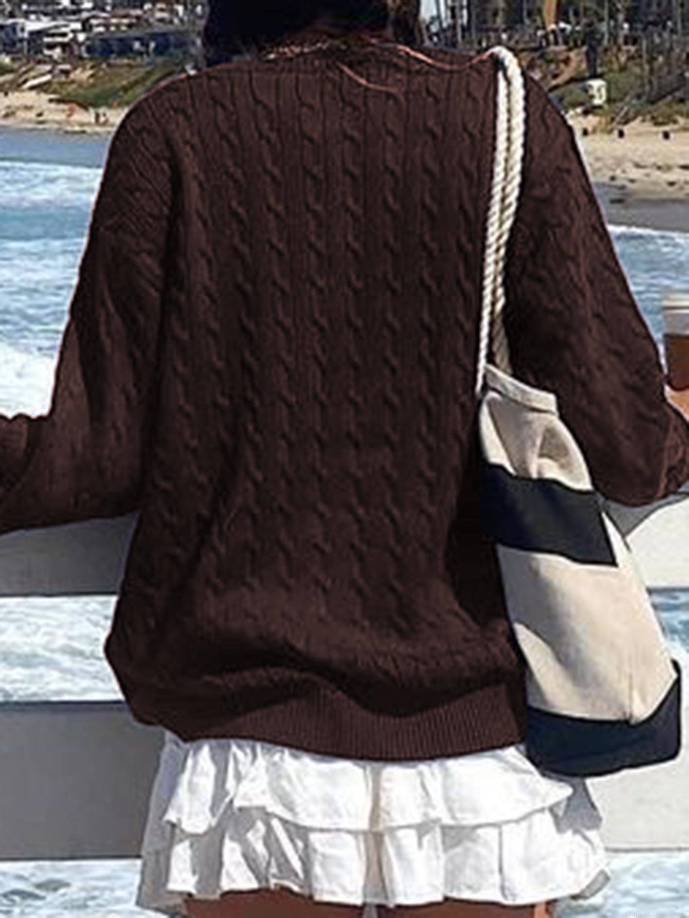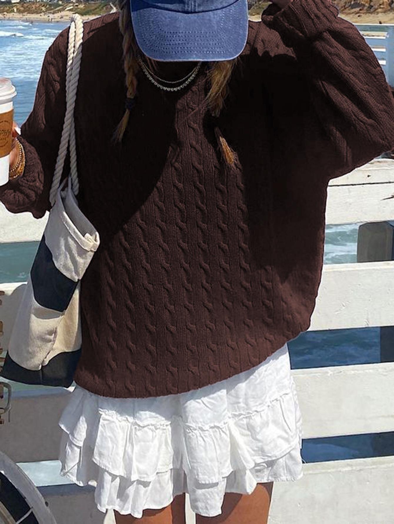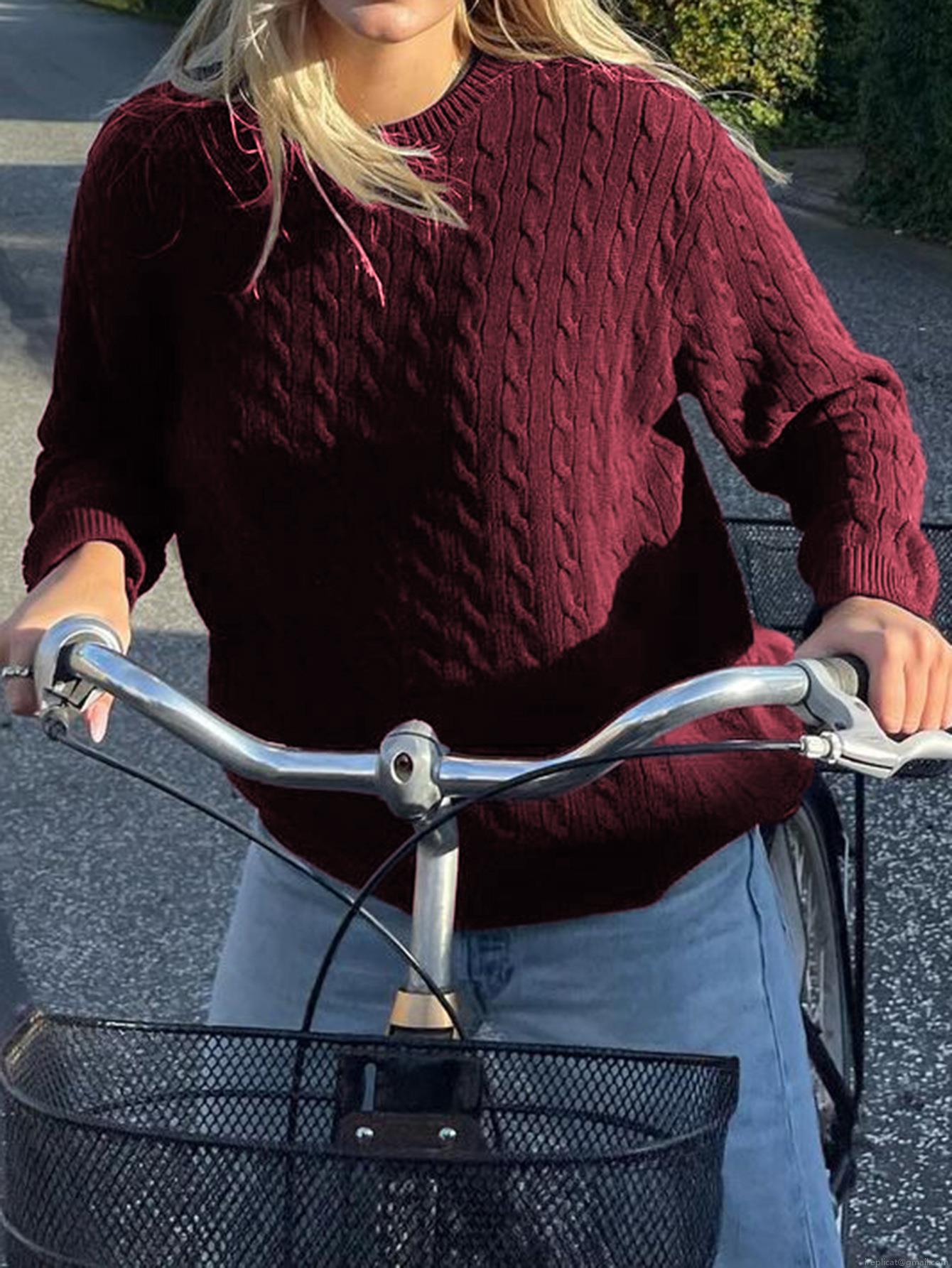• Women's Cable Knit Sweater Viscose Blend Round Neck Long Sleeve Pullover Casual Vacation Loose Fit Warm Winter Jumper Top