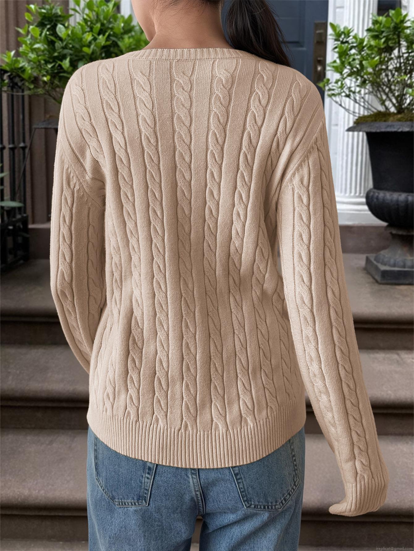 Solid Color, Twisted Rope, Button Decoration, Cable Knit Pattern