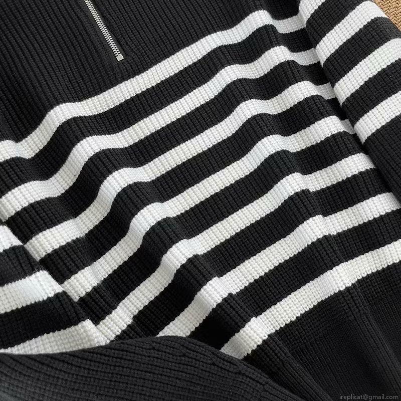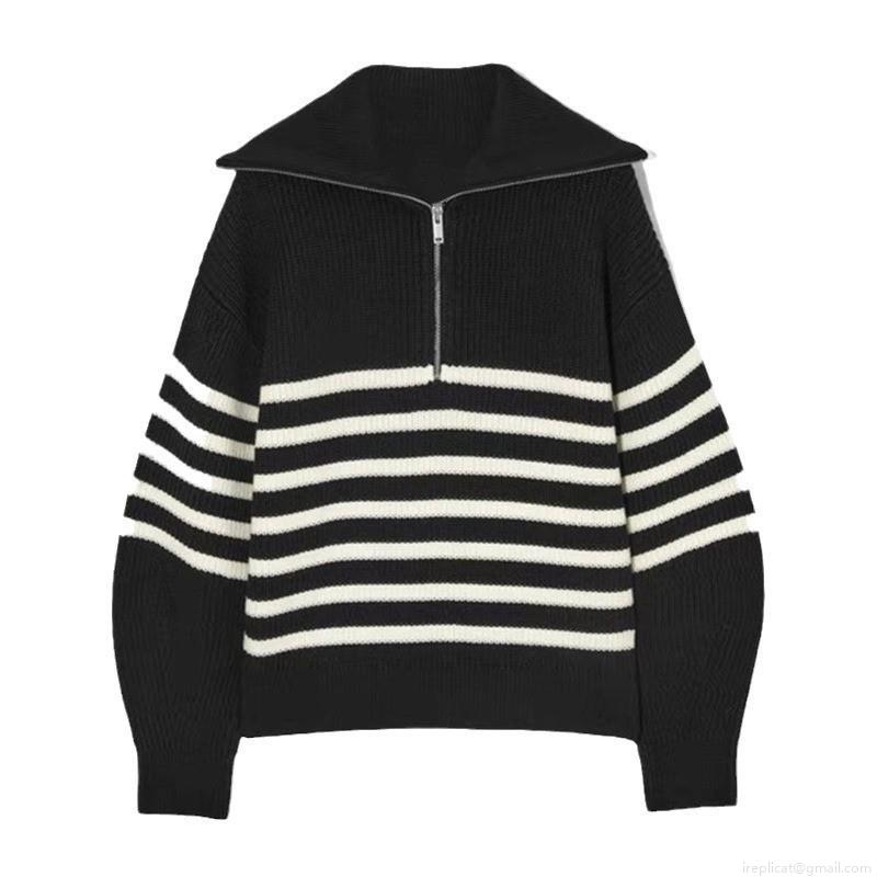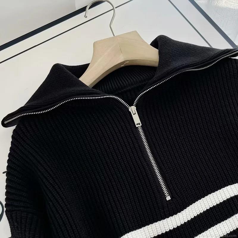 • Women's Casual Cotton Blend Half Zip Knit Sweater Loose Striped Solid Pullover Jumper For Daily Commute Minimalist Long Sleeve Thick Knit Top