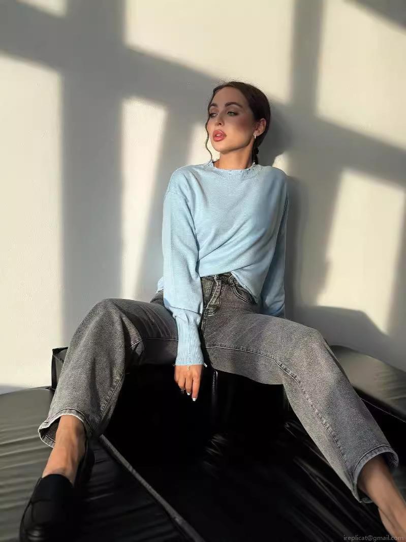 • Women's Casual Crew Neck Sweater Vintage Distressed Frayed Edge Knitwear Soft Cotton Blend Long Sleeve Pullover Autumn Winter Plain Tops for Women
