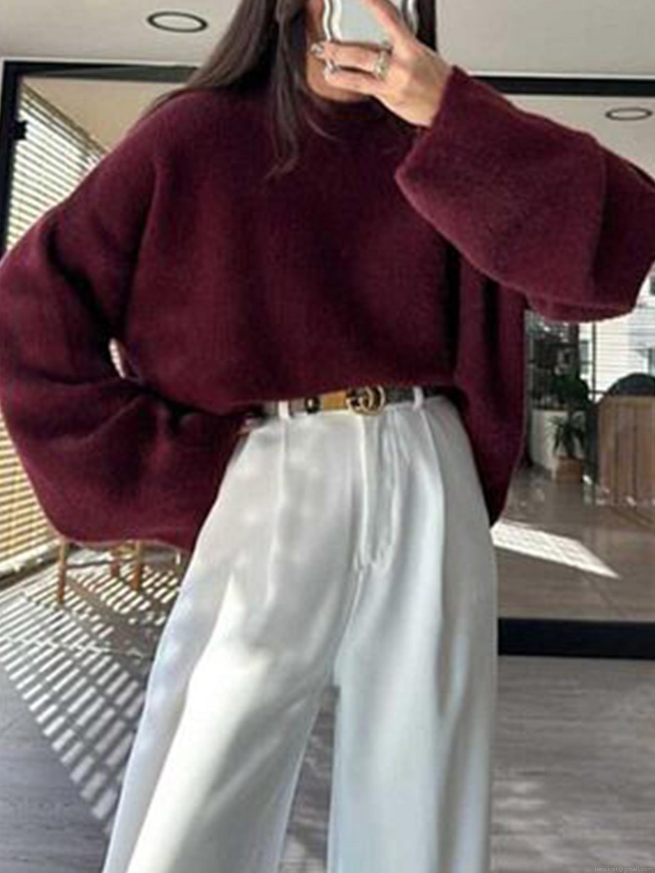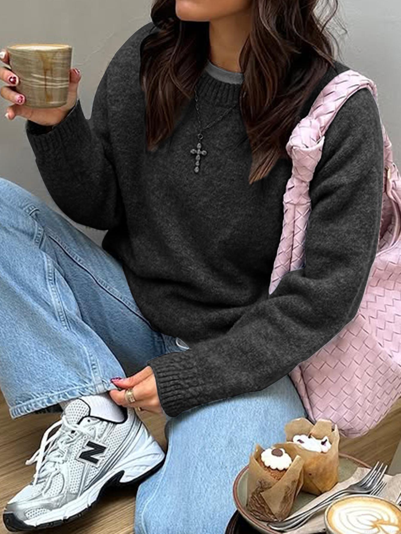 • Women's Casual Crewneck Long Sleeve Knit Sweater Loose Solid Color Pullover Top with 65% Polyester 13% Nylon 13% Acrylic 6% Wool 3% Spandex for Autumn Winter