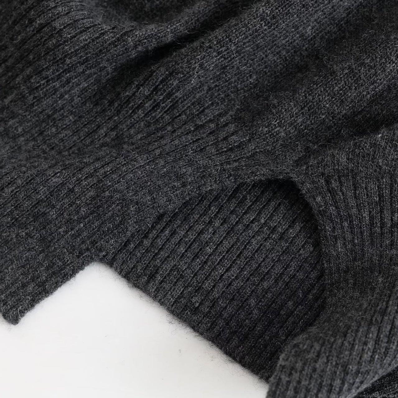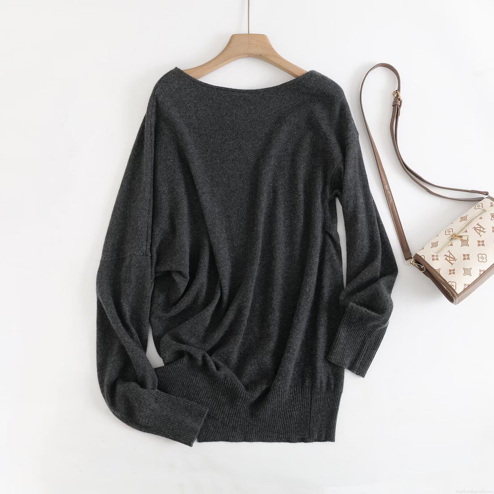 • Women's Casual Knitted Long Sleeve Top 50 Percent Wool Blend Soft Solid Color Deep Grey Round Neck Pullover Sweater For Autumn Winter Daily Fashion