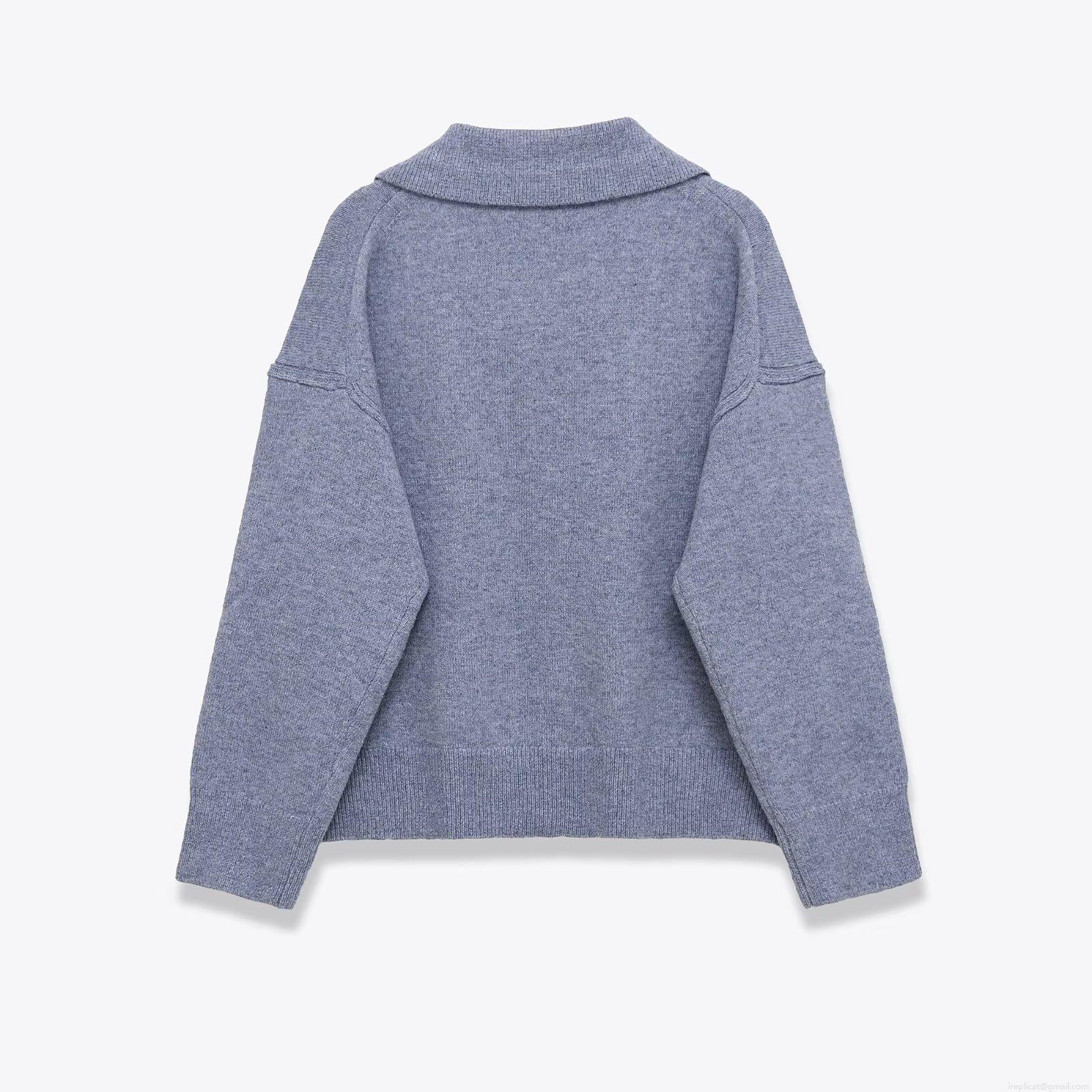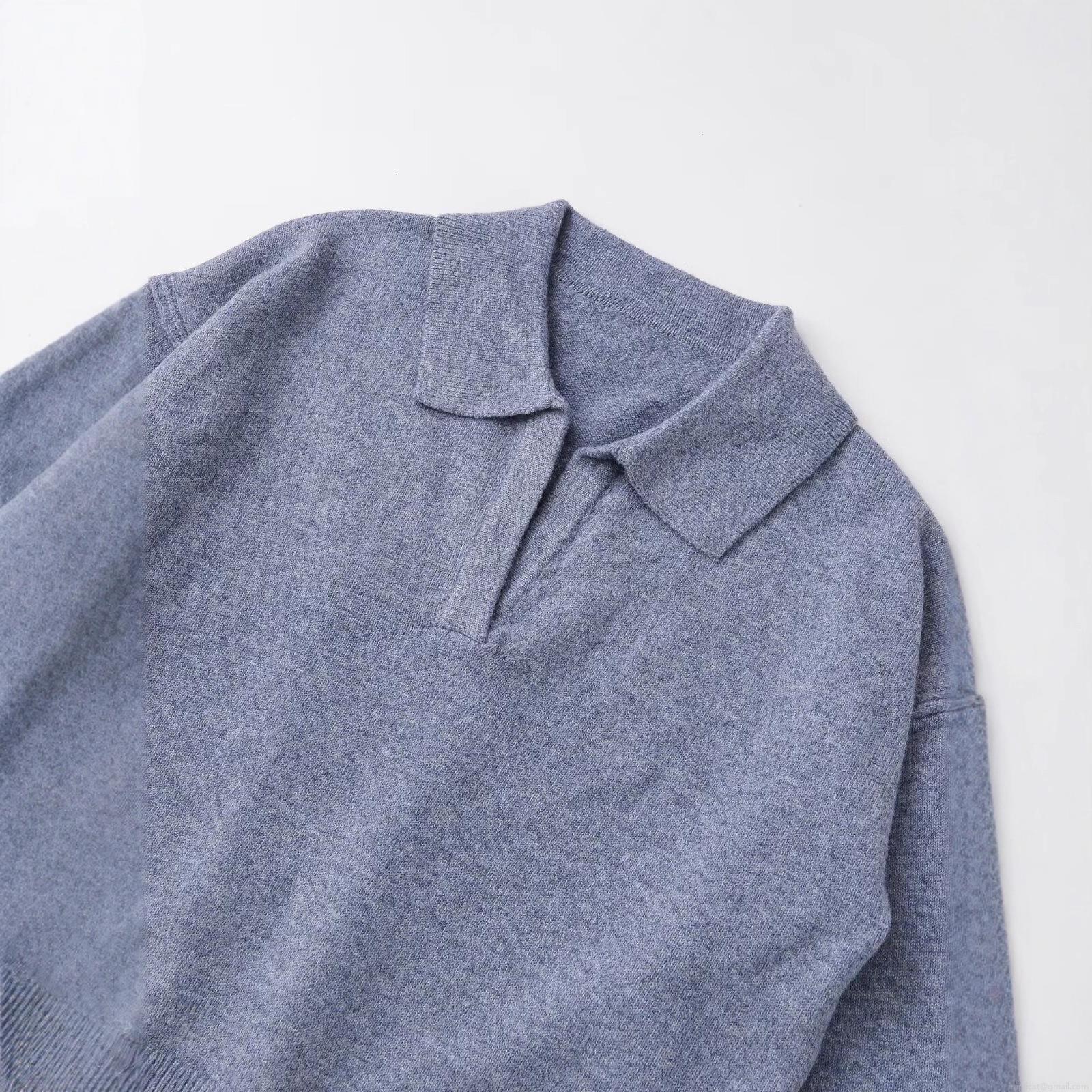 • Women's Casual Knitted Sweater Polo Collar Long Sleeve Solid Color Pullover Top Loose Fit Knitwear for Autumn Winter Streetwear