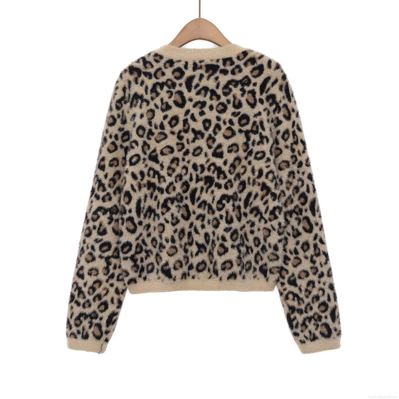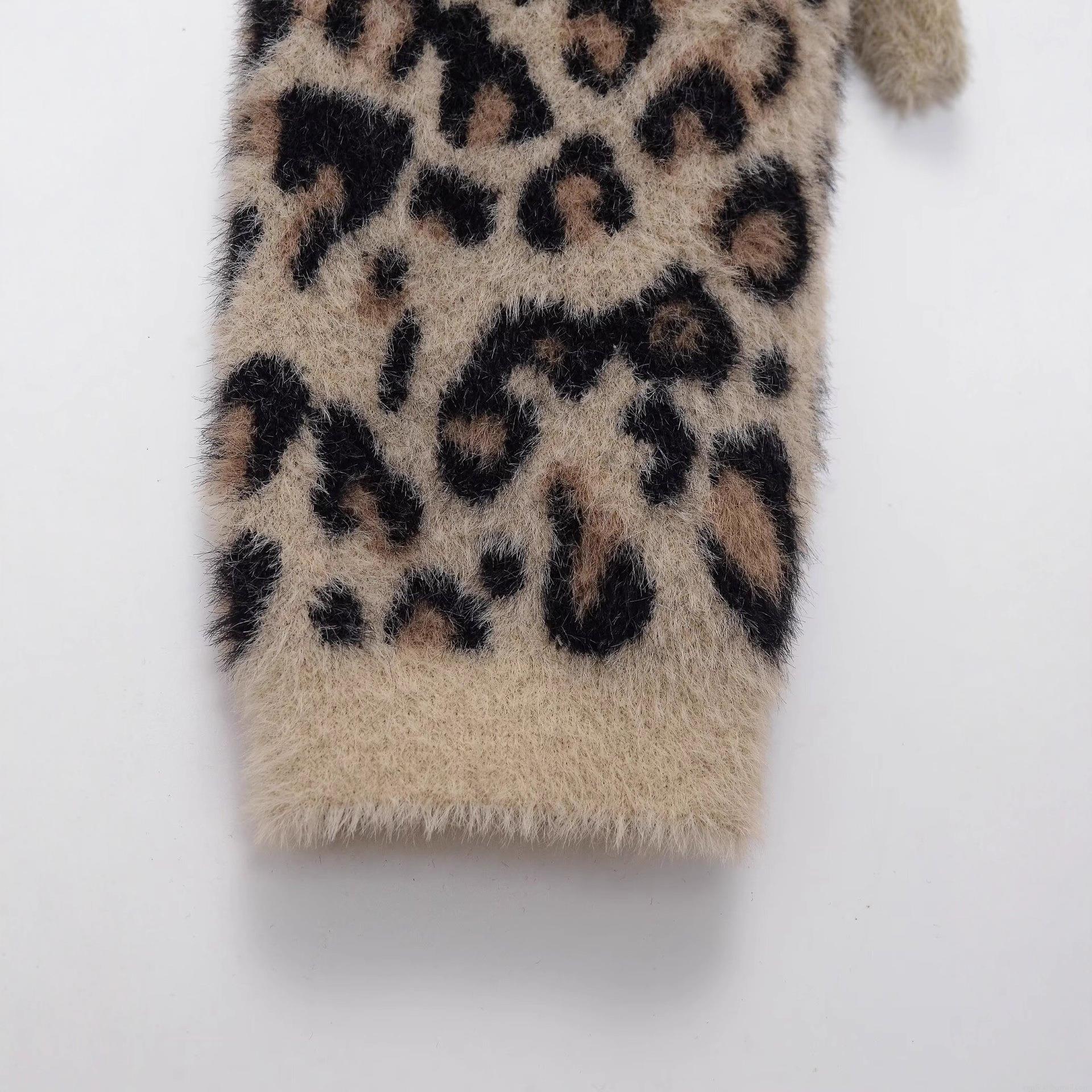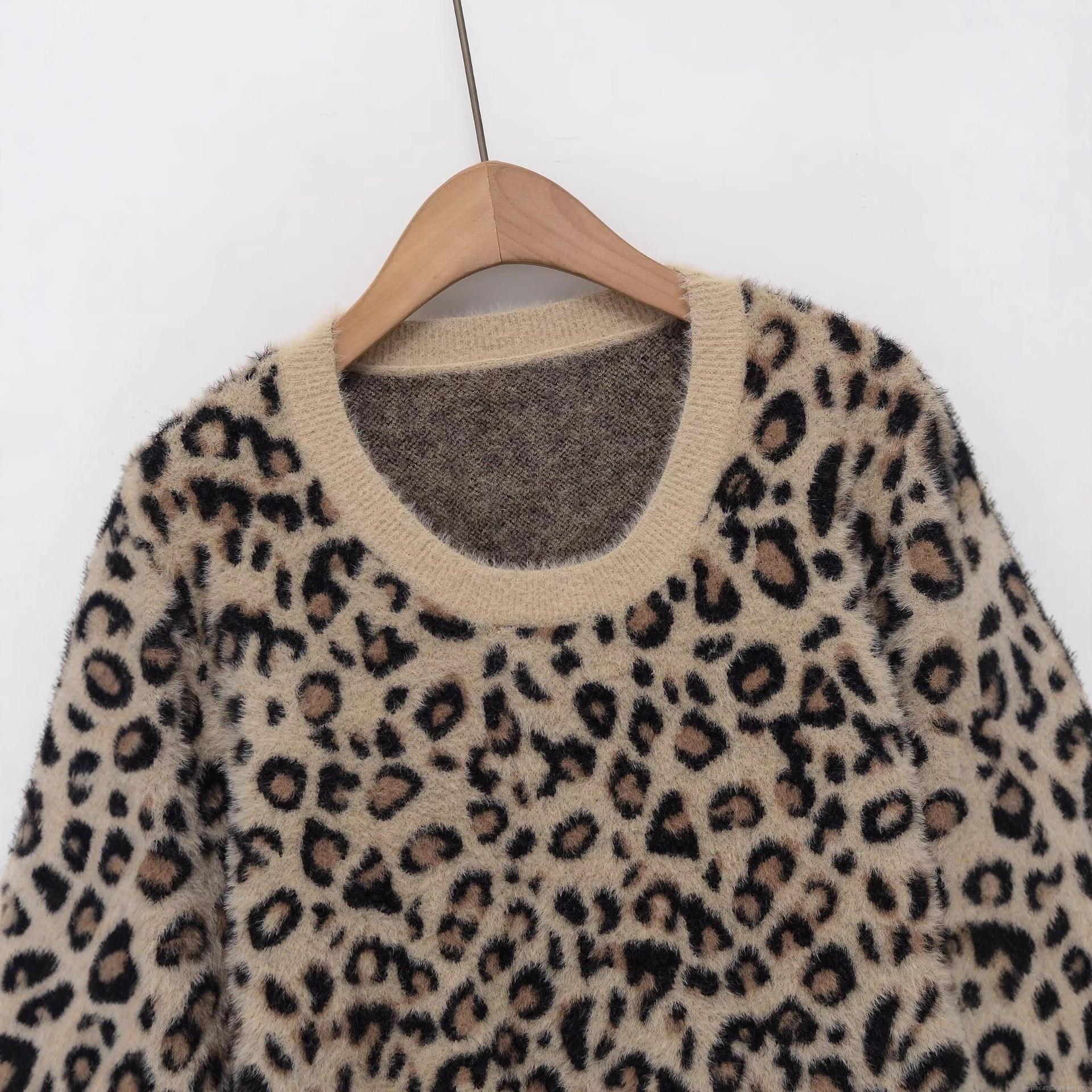 • Women's Casual Leopard Print Long Sleeve Sweater Faux Mohair Knit Round Neck Warm Pullover Top For Daily Streetwear