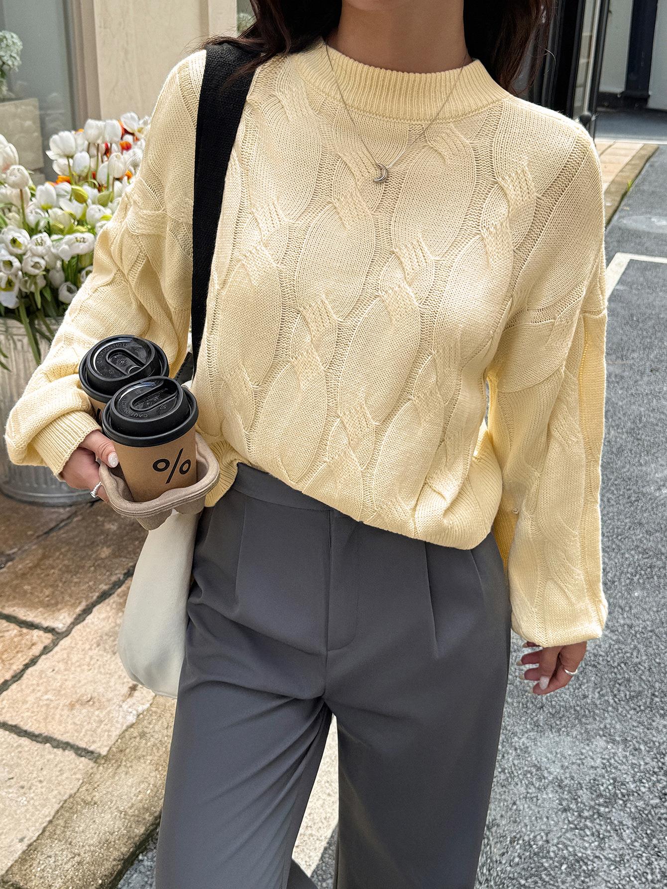 • Women's Casual Loose Cable Knit Sweater Soft 100% Acrylic Round Neck Long Sleeve Pullover Warm Fall Winter Jumper Top For Ladies Solid Color Knitwear