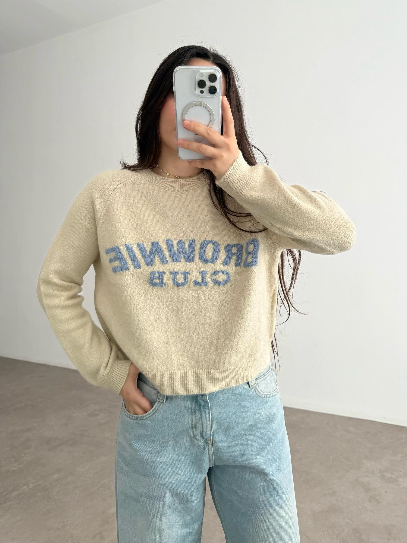 • Women's Casual Loose Crewneck Pullover Sweater Letter Towel Embroidery Cotton Polyester Blend Long Sleeve Knitwear Autumn Winter Streetwear Top