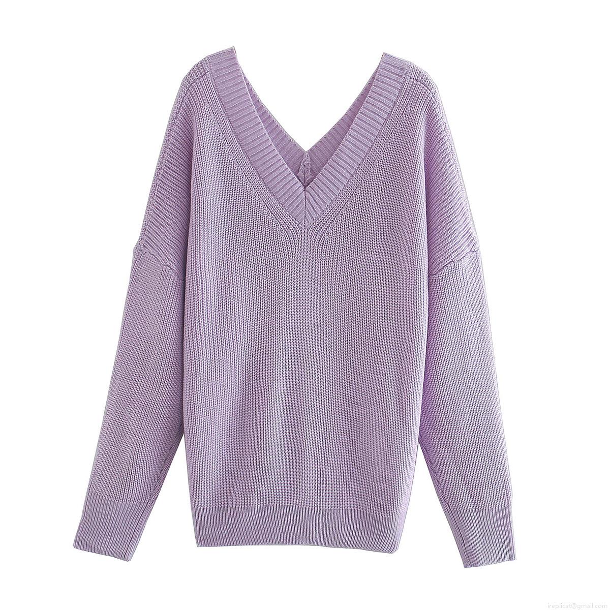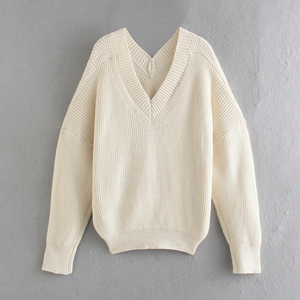 • Women's Casual Loose Knit V-Neck Sweater Soft Solid Color Long Sleeve Pullover Ribbed Knit Jumper For Daily Streetwear Comfort Top