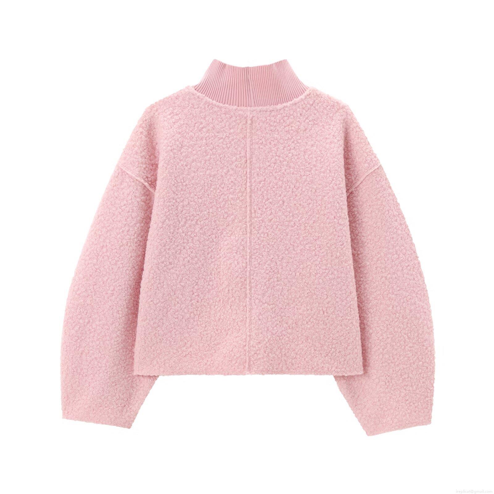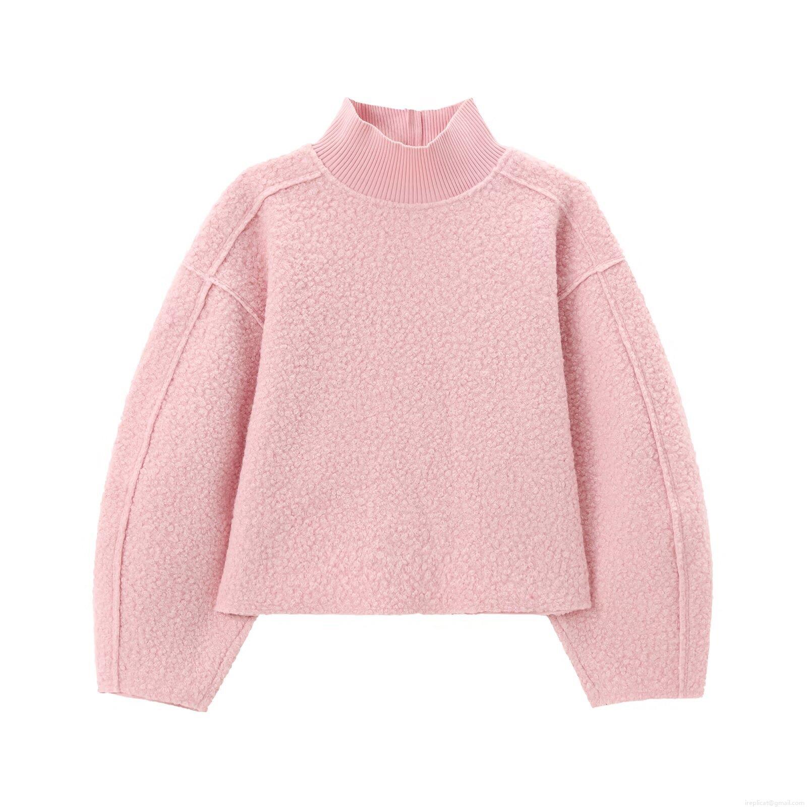 Women's Casual Loose Stand Collar Lantern Long Sleeve Sweater Solid Color Knit Pullover Jumper For Autumn Winter Lady