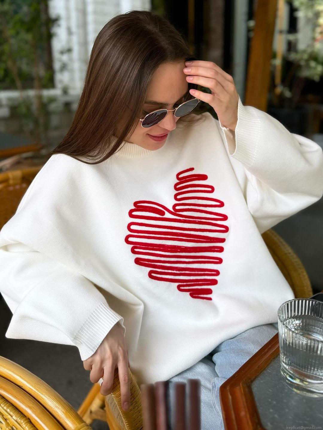• Women's Casual Oversized Heart Embroidered Sweater Round Neck Long Sleeve Knit Pullover Loose Fit Fashion Top for Women Streetwear
