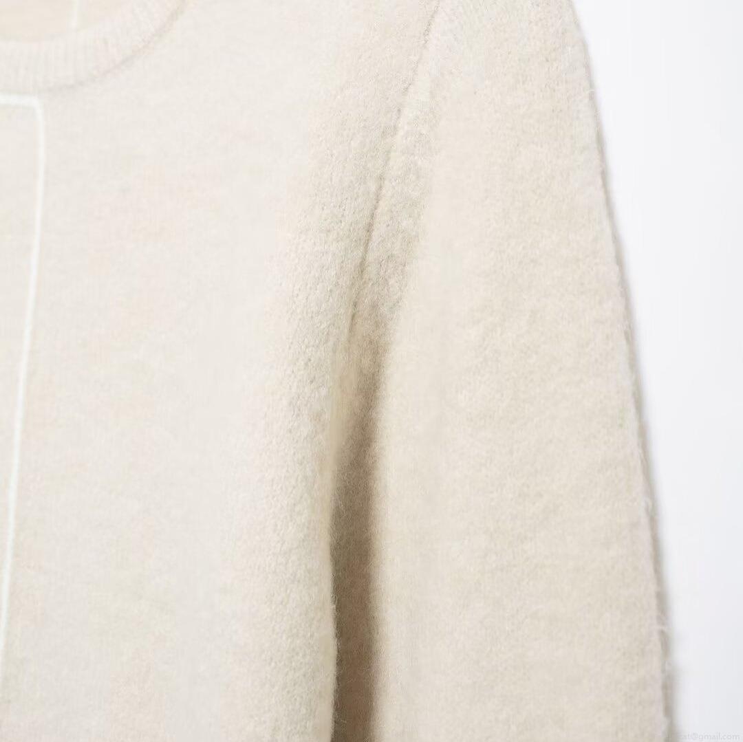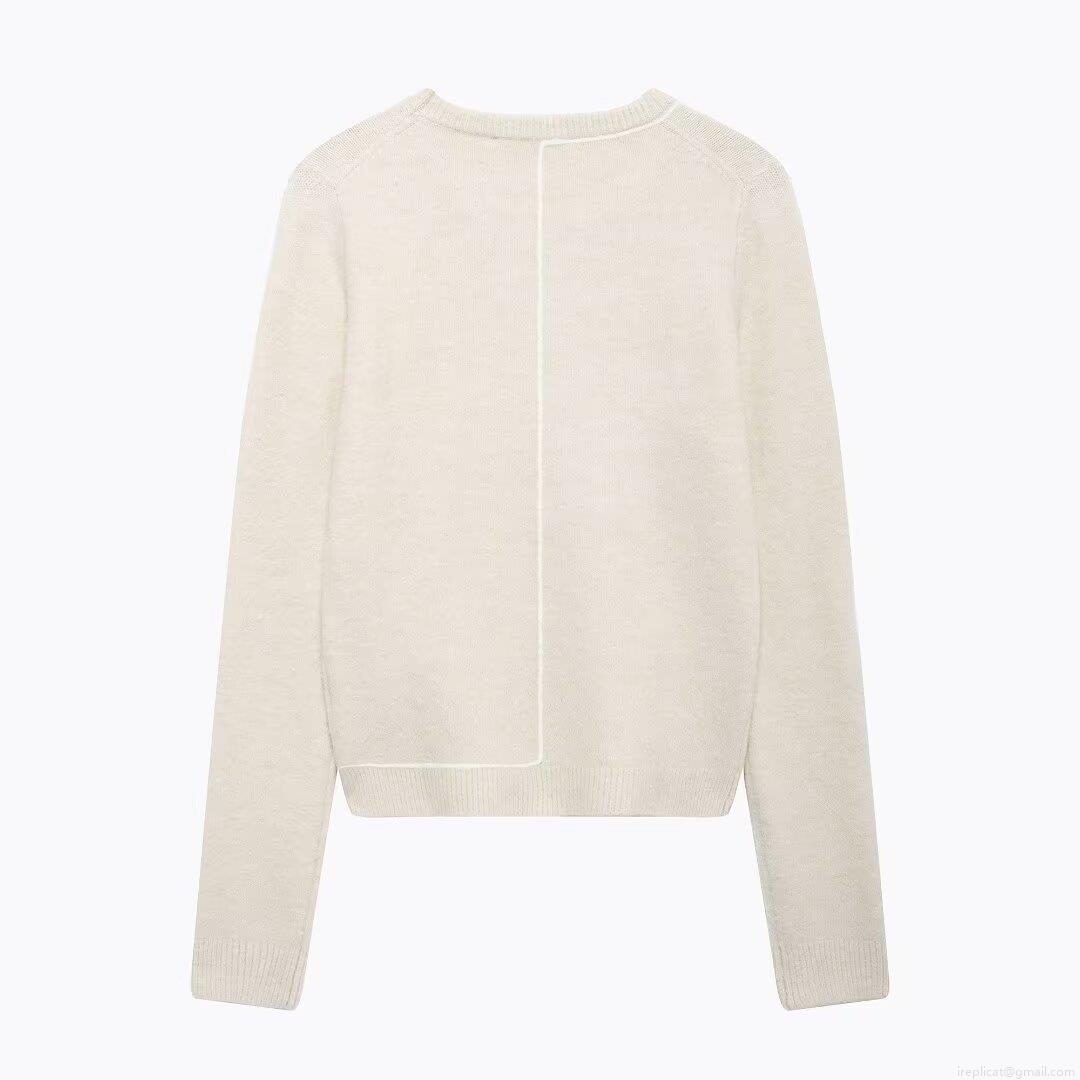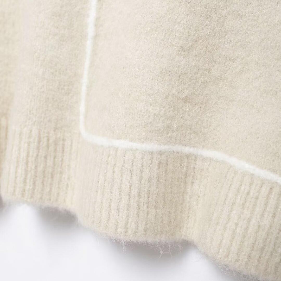 • Women's Casual Round Neck Knit Sweater Loose Pullover Long Sleeve Top With Decorative Contrast Seam Lines 100% Polyester Knitwear For Autumn Winter