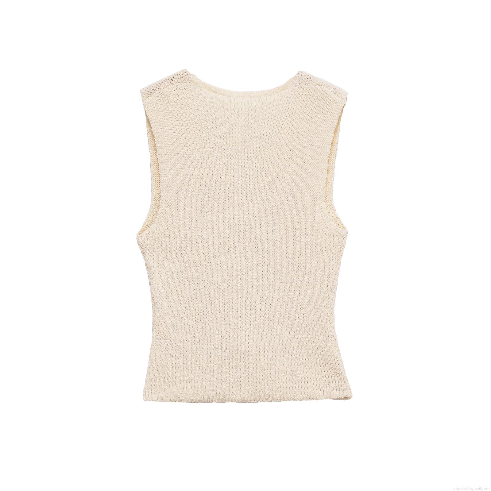 • Women's Casual V-Neck Knit Vest Sleeveless Single Breasted Ribbed Cardigan Top Streetwear Summer Button Down Knitwear For Women