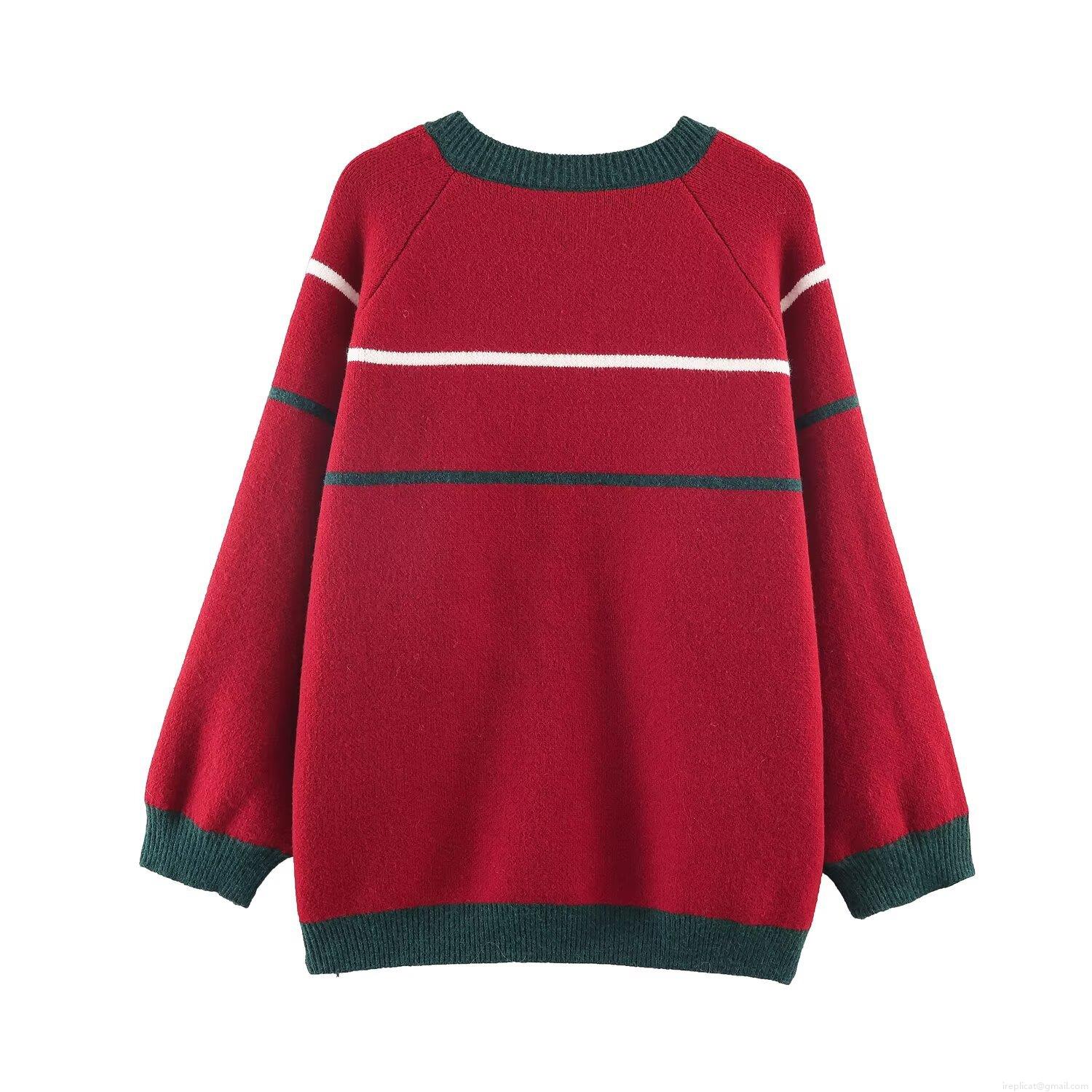 • Women's Christmas Knit Cardigan 3D Gnome Teddy Bear Contrast Color Stripe Long Sleeve Loose Sweater Coat For Festive Holiday Party Winter Outerwear
