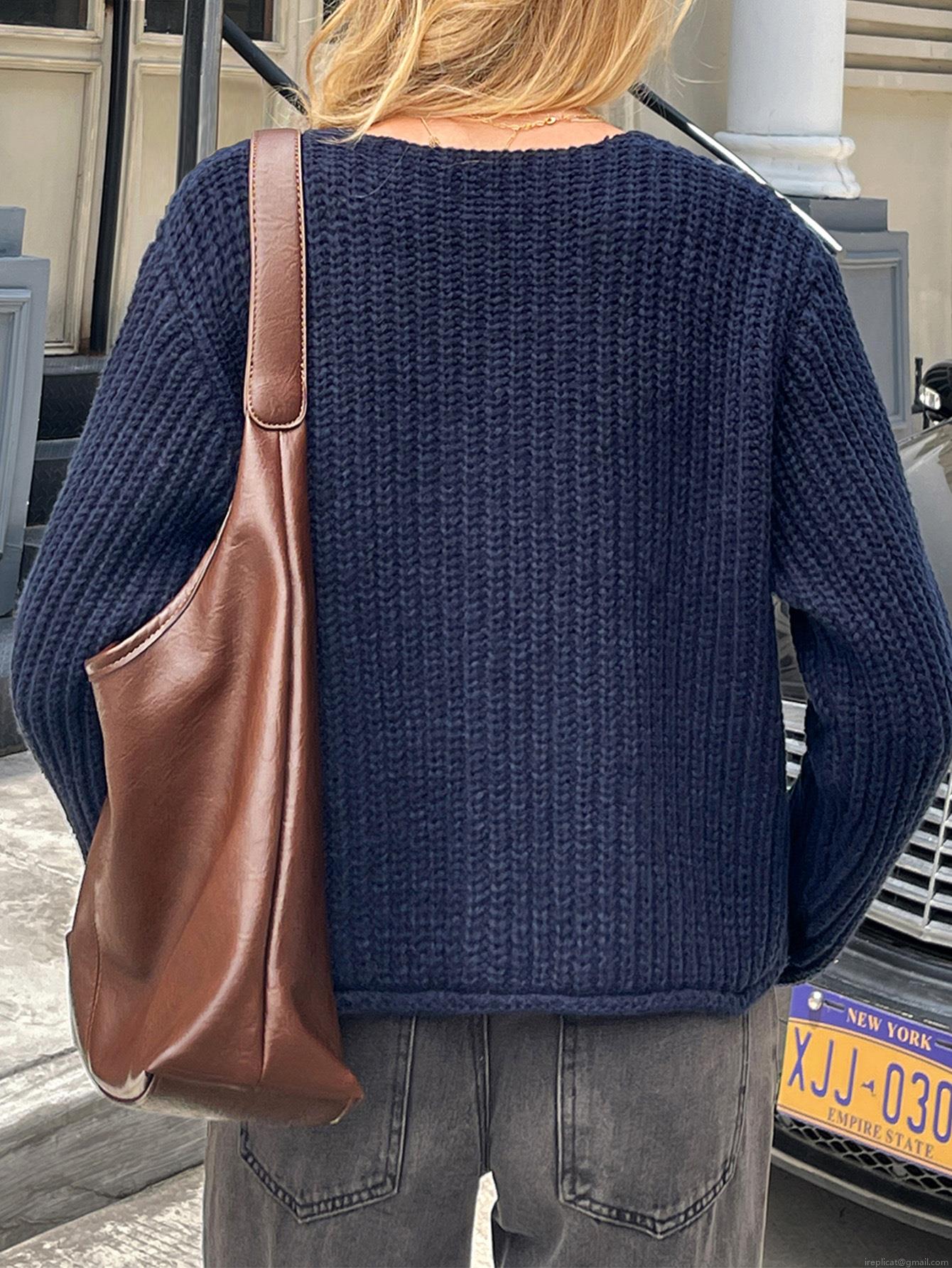 • Women's Chunky Knit Cardigan Sweater 100% Polyester Round Neck Single Breasted Gold Buttons Front Pockets Long Sleeve Loose Fit Casual Warm Outwear For Autumn Winter Women Vacation Streetwear