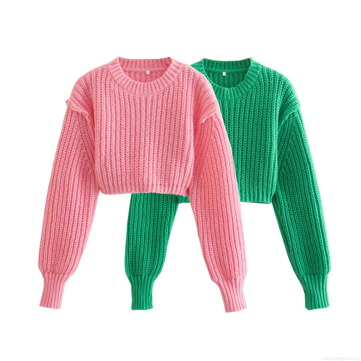 Solid Color, Chunky Knit, Ribbed Seam, Cropped Top
