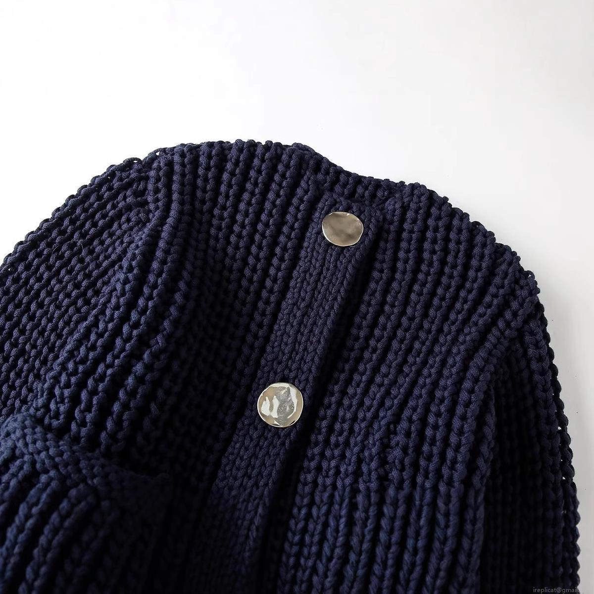 Solid Color, Chunky Knit, Decorative Pockets, Silver Round Button