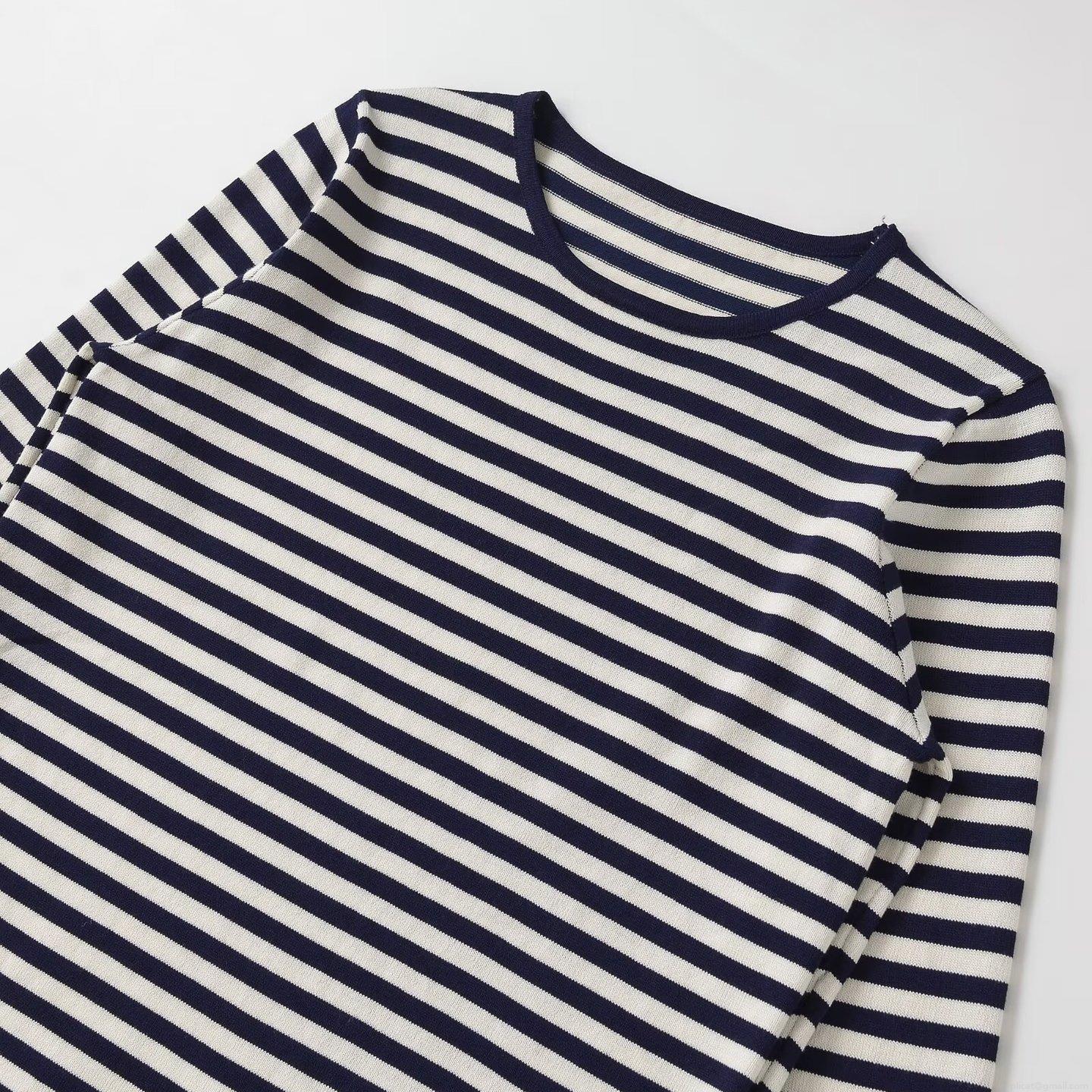 • Women's Classic Horizontal Striped Knit Sweater Long Sleeve Round Neck Casual Polyester Blend T-Shirt Pullover Top For Daily Wear Spring Autumn