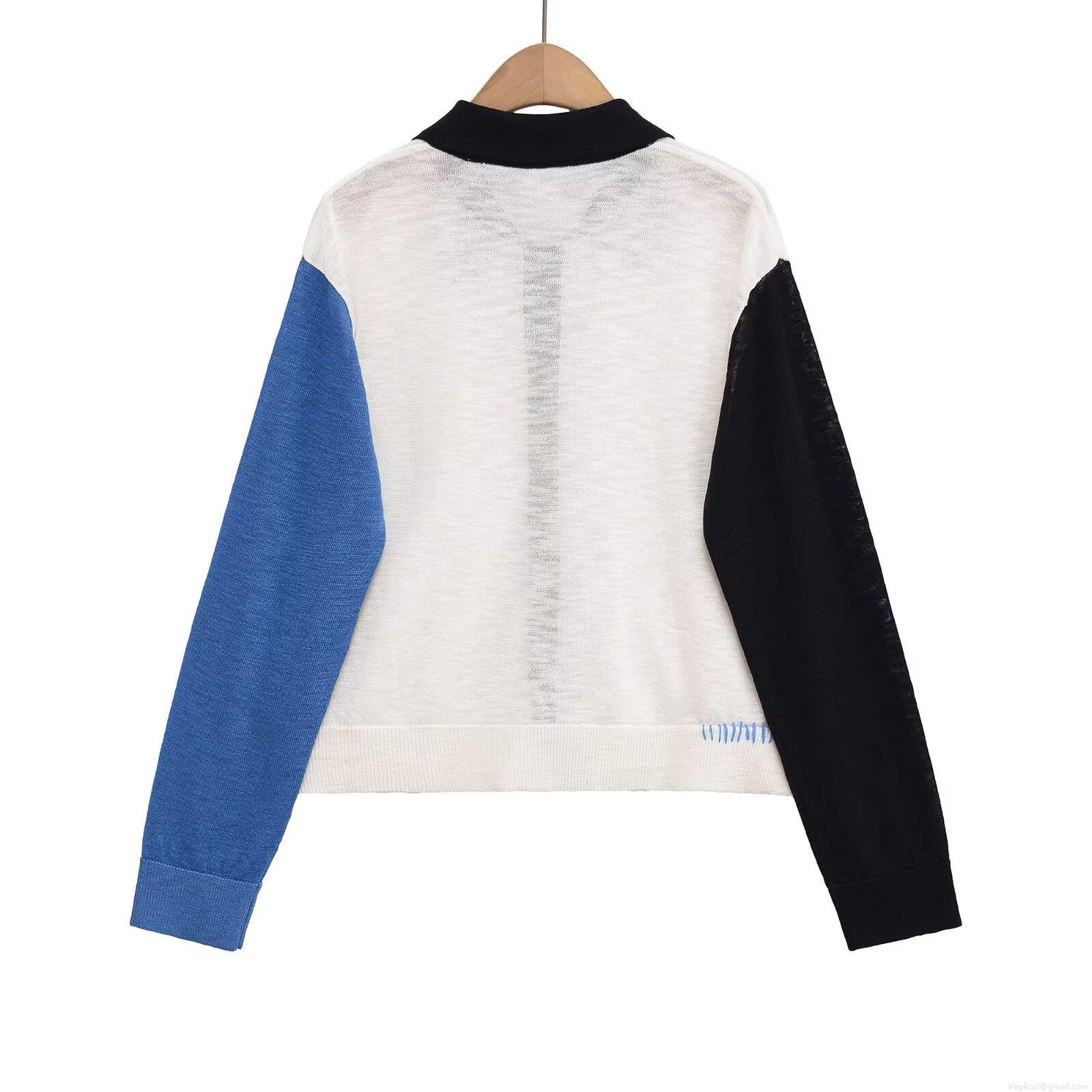 Color Blocking, Lapel, Polo Collar, Blue Stitching Decoration