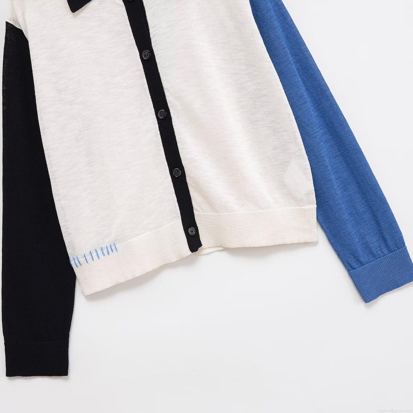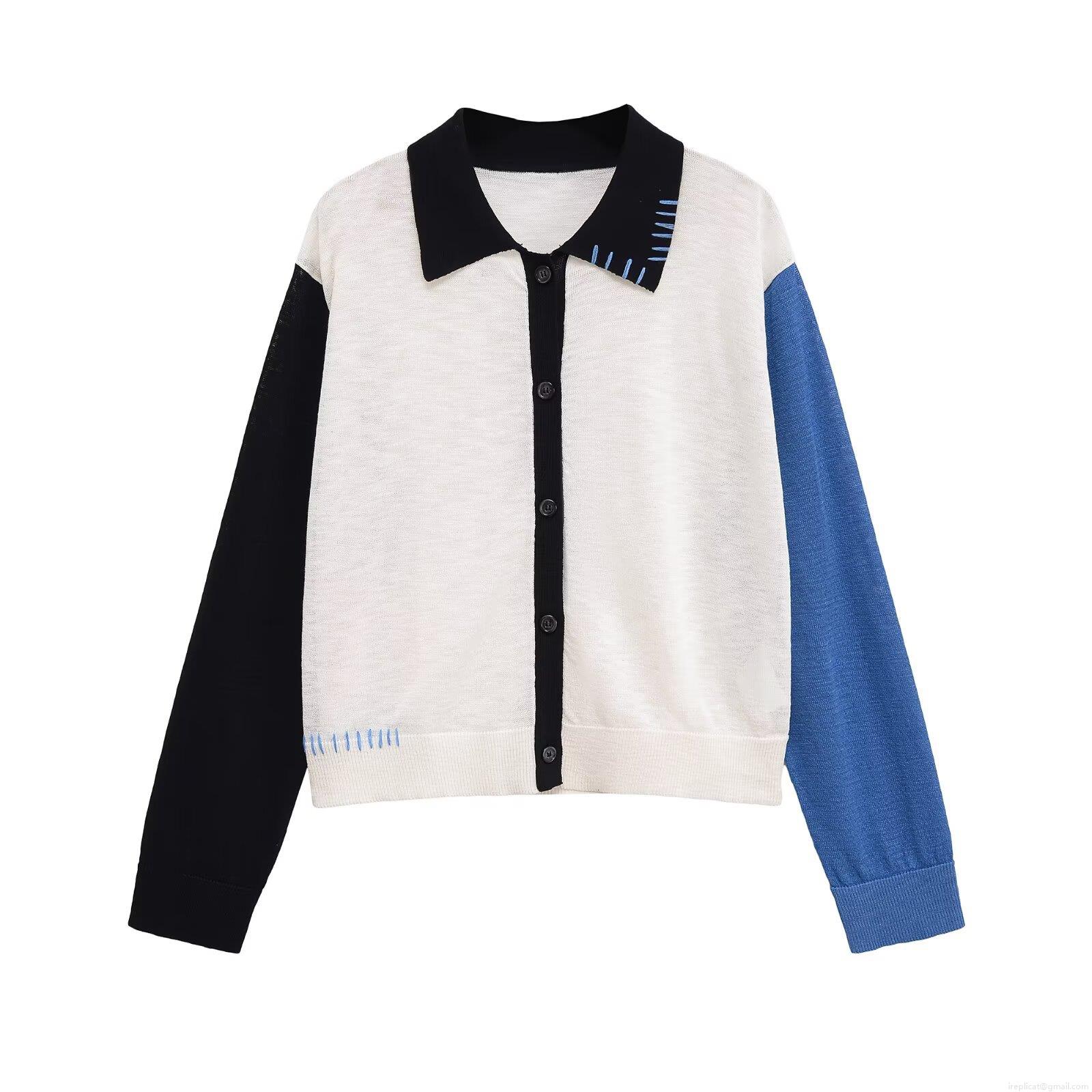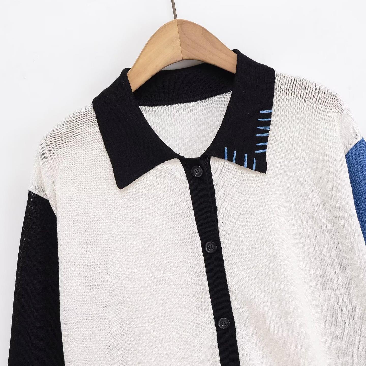 • Women's Colorblock Knit Cardigan Sweater Polo Collar Long Sleeve Button Down Loose Fit Top Casual Fall Winter Outwear for Women