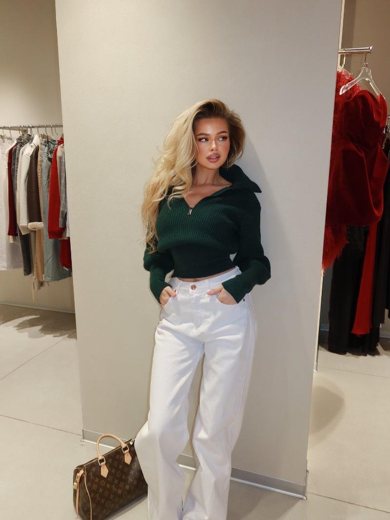 • Women's Cotton Polyester Half Zip Lapel Knit Sweater Casual Solid Color Long Sleeve Loose Short Pullover Tops for Autumn Winter