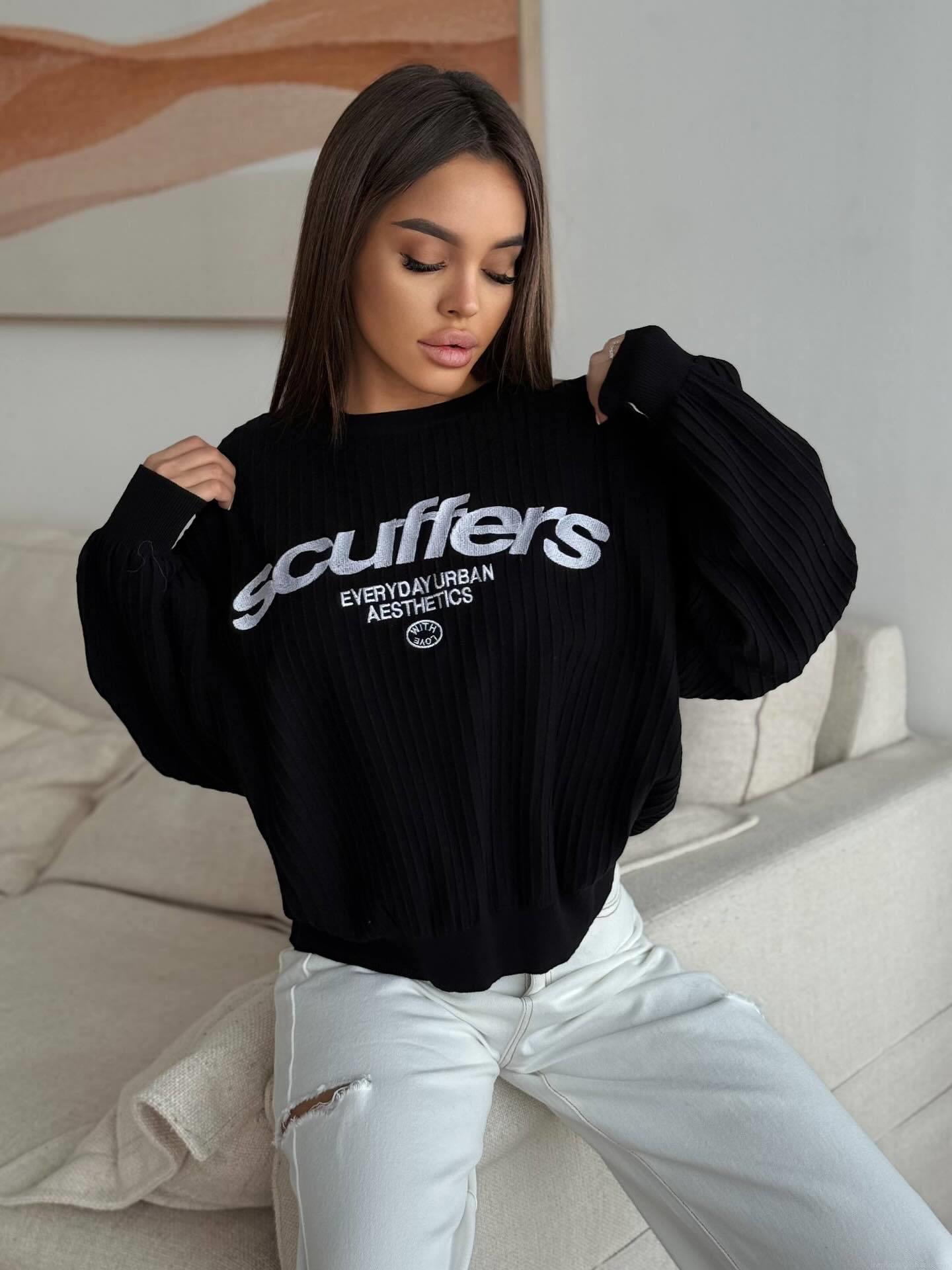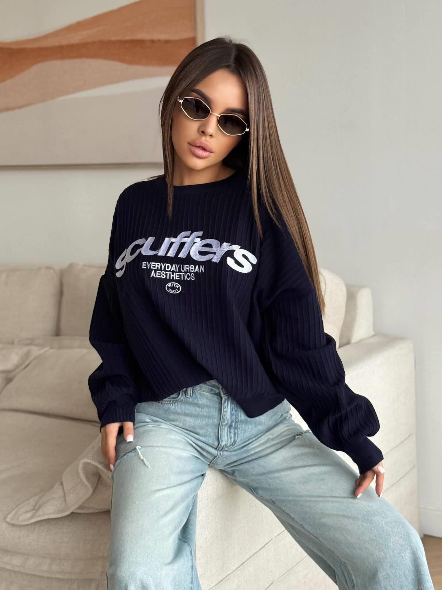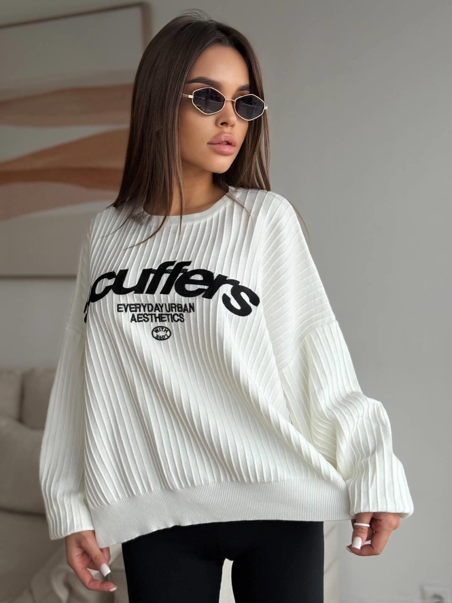 • Women's Cotton Polyester Ribbed Knit Sweater Loose Crew Neck Pullover Letter Print Urban Casual Streetwear Long Sleeve Jumper Top