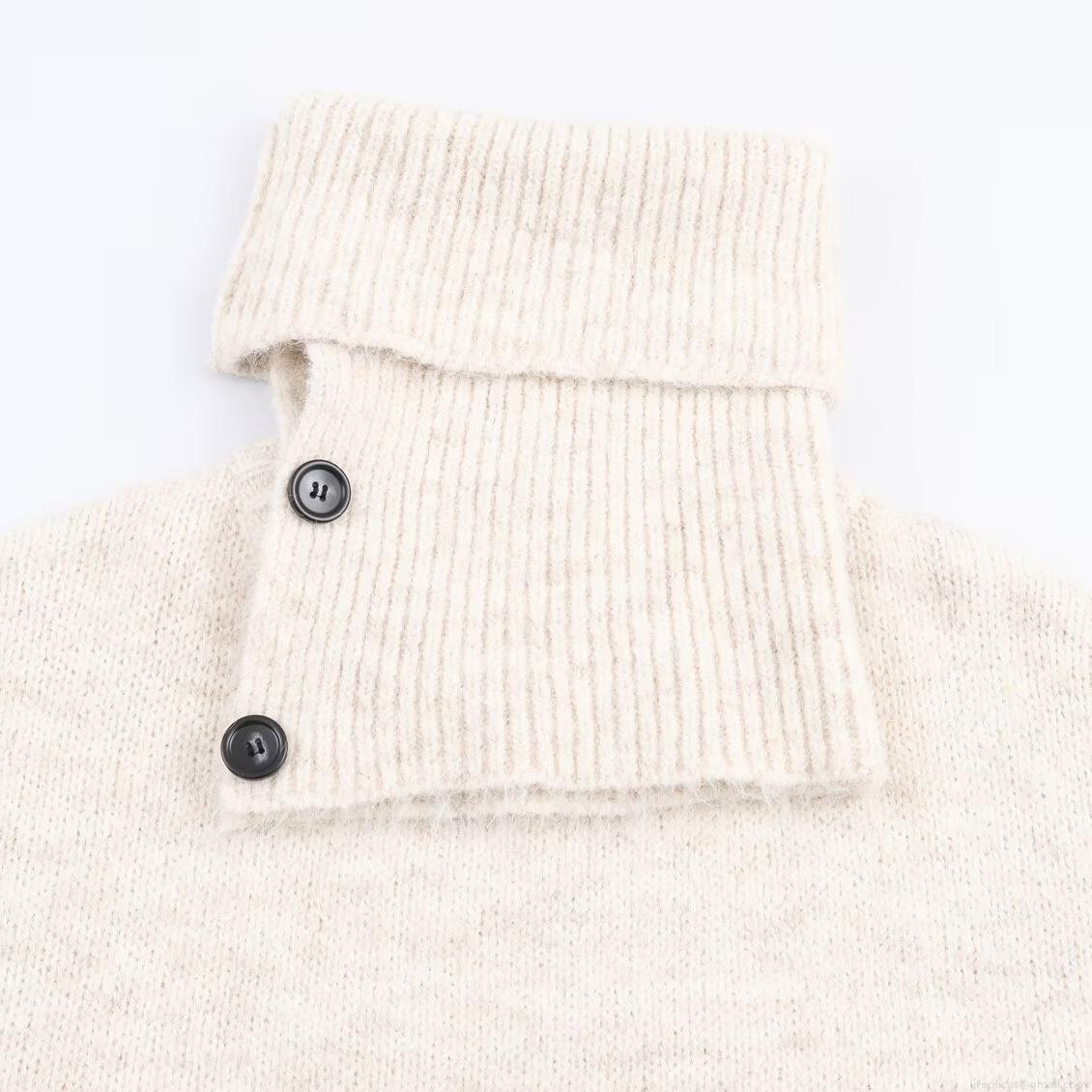• Women's Cowl Neck Knit Sweater Loose Fit Casual Solid Color Pullover Top With Decorative Buttons Soft Blended Yarn Long Sleeve Jumper For Autumn Winter