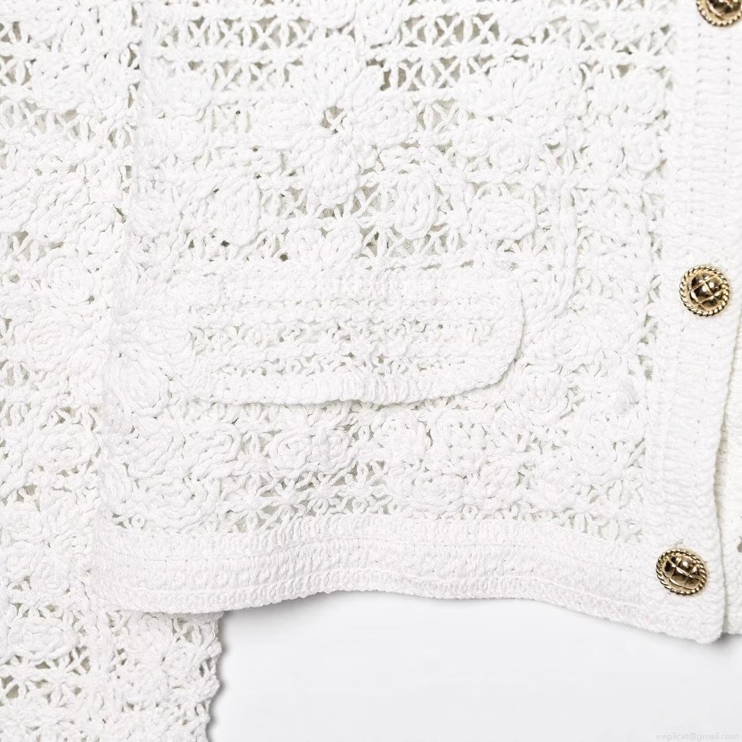 Solid Color, Hollow Out, Crochet, Button, Floral Texture, Gold Buttons