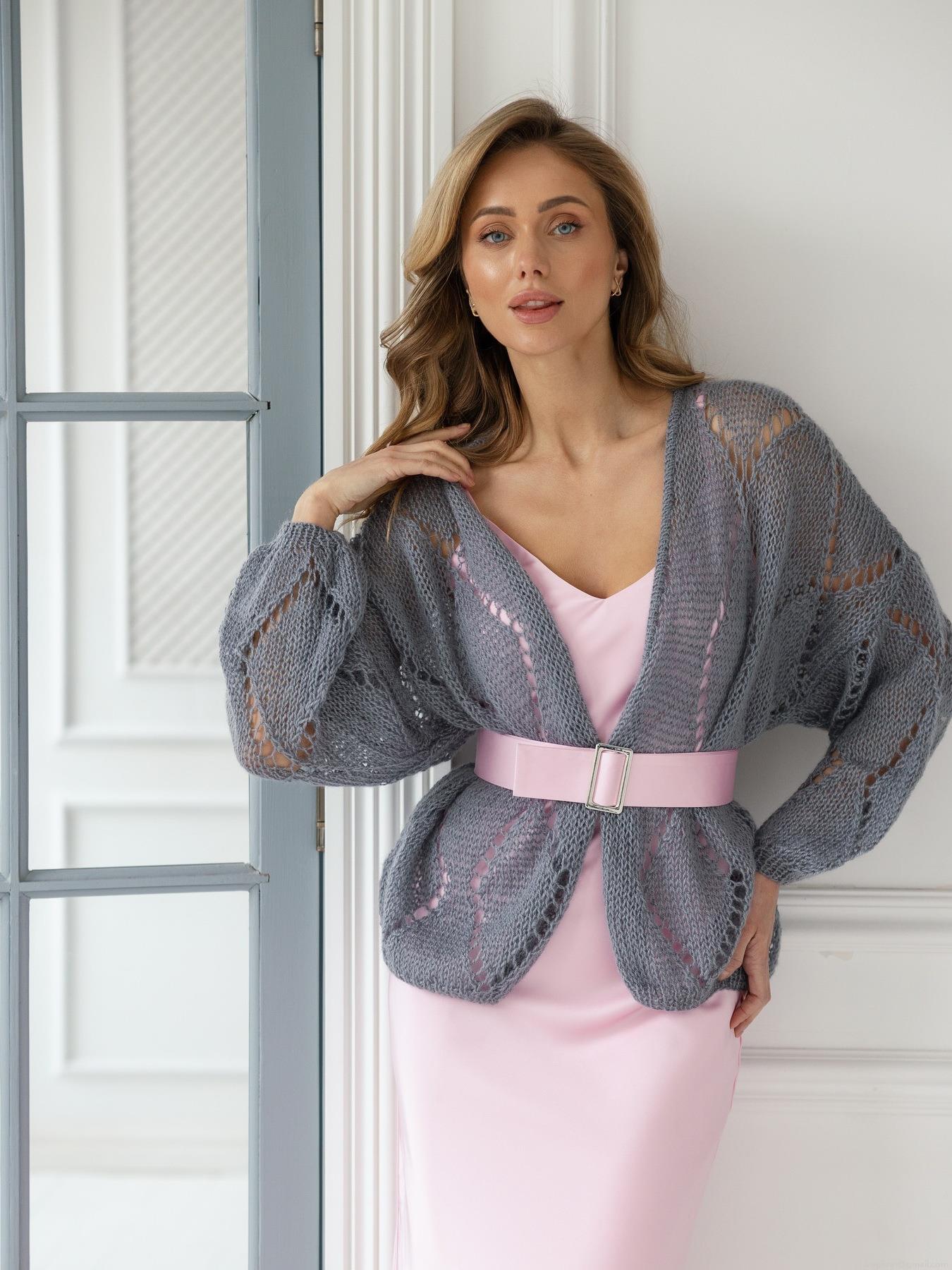 • Women's Diamond Hollow Knit Cardigan Sexy V-Neck Lantern Sleeve Short Sweater Elegant Spring Autumn Lightweight Viscose Blend Crochet Knit Top For Women